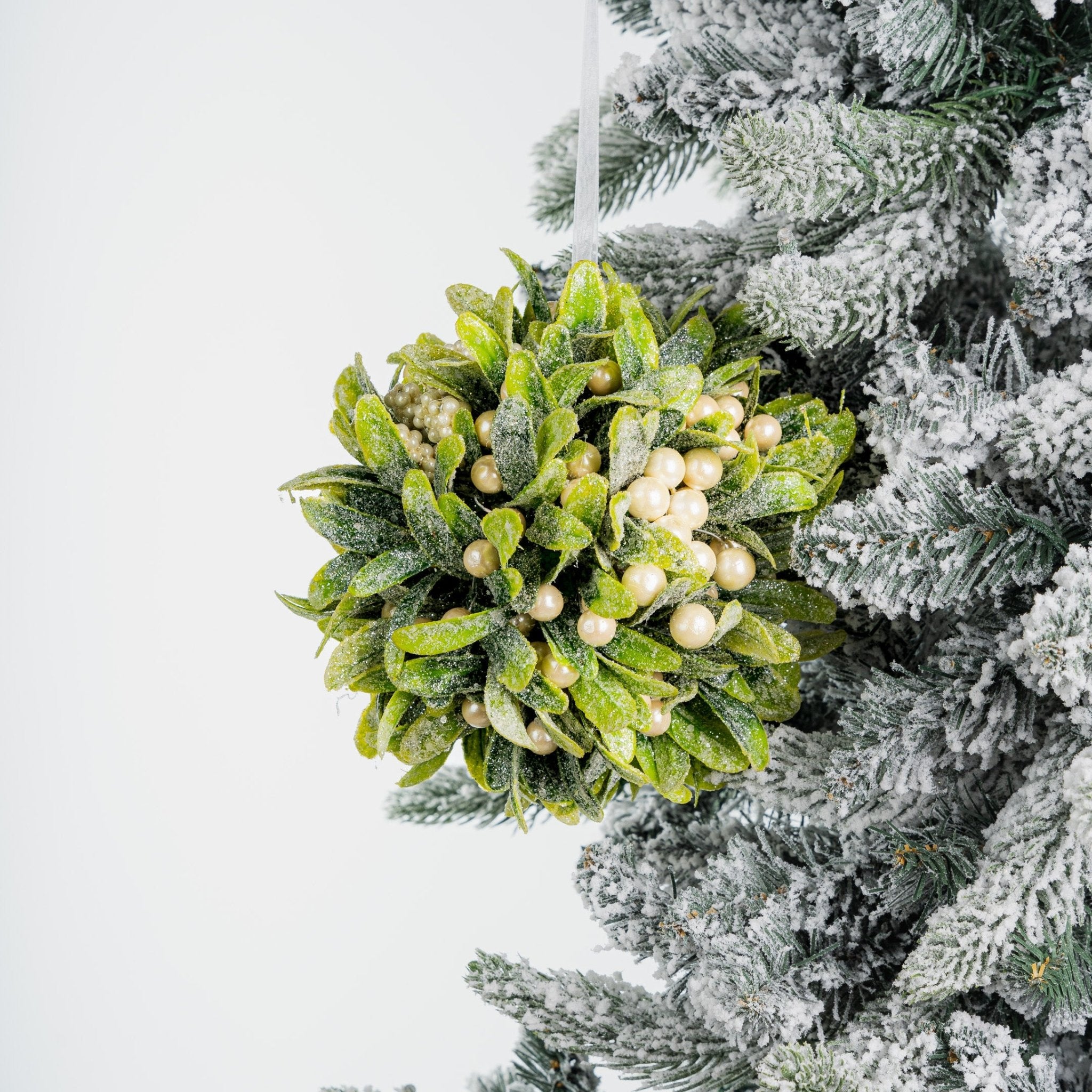 نبات الدبق مع التوت الشتوي الأبيض