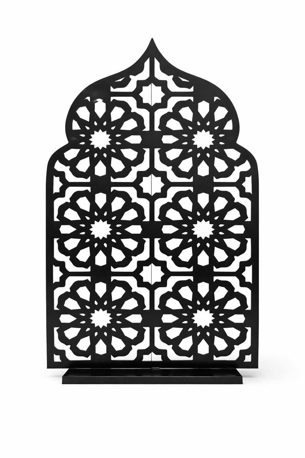 Bring depth, elegance, and cultural refinement to your Ramadan décor with this striking black filigree mosque silhouette. Crafted in an ornate lattice pattern inspired by traditional Islamic architecture, this piece makes a bold and sophisticated statement. The deep obsidian finish enhances the intricacy of the design, casting beautiful shadows that transform your space into a serene, ambient setting.