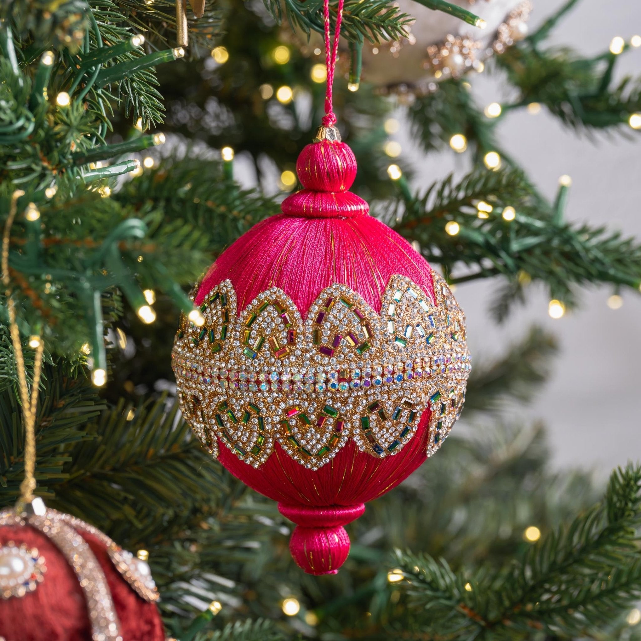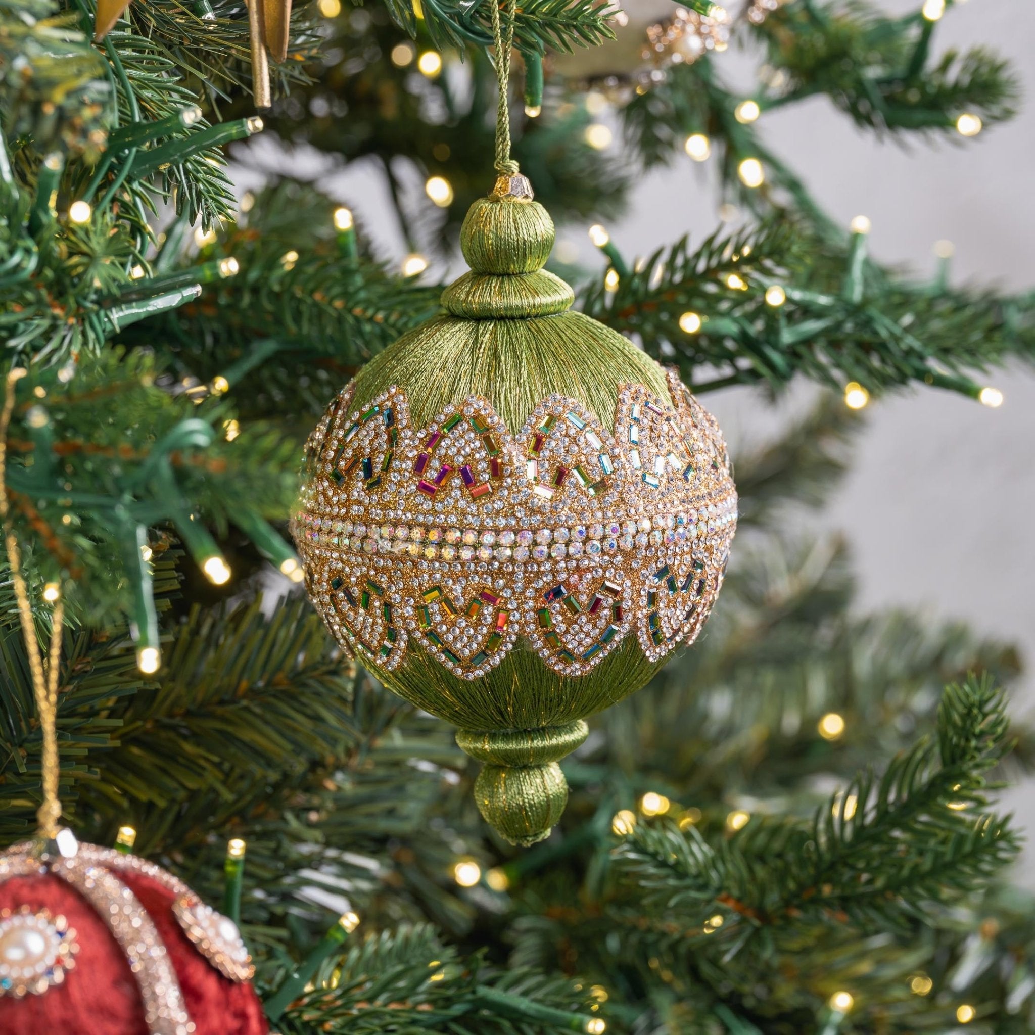 أضف لمسة من الأناقة الكلاسيكية إلى ديكورات احتفالاتك مع زينة الزينة العلوية المرصعة بالجواهر، المتوفرة باللون الوردي الفاتح والأخضر الليموني النابض بالحياة. تتميز هذه الزينة بتصميمها الكلاسيكي ولمسات الجواهر البراقة، مما يضفي سحرًا خالدًا على أشجار عيد الميلاد، أو أكاليل الزهور، أو أي ديكور احتفالي. مثالية للديكورات التقليدية، أو الرومانسية، أو ذات الطابع التراثي، فهي تضيف لمسة من الرقي والبهجة الاحتفالية إلى أي مكان.