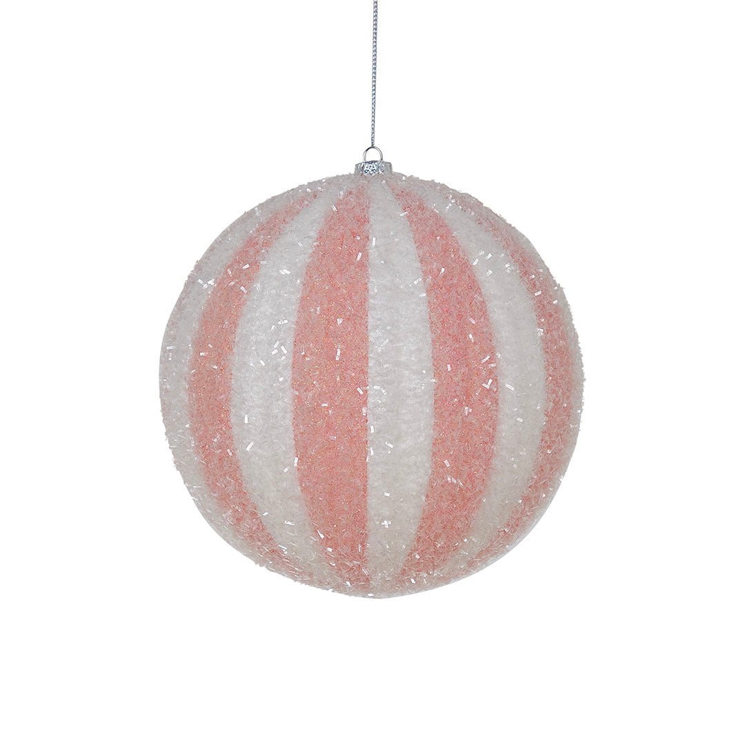 Add playful sophistication to your holiday décor with the 15cm Pink & White Ball Ornament with White Glitter. Crafted from high-quality PET with sparkling white glitter, this striped candy-inspired ornament exudes whimsy and elegance.