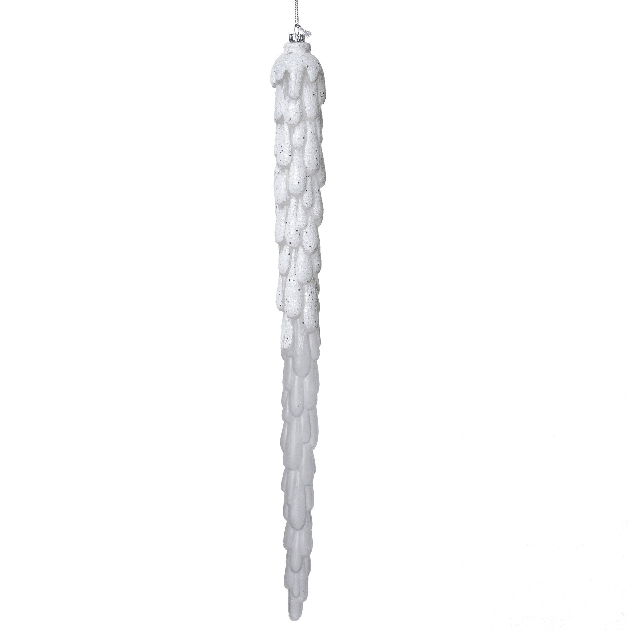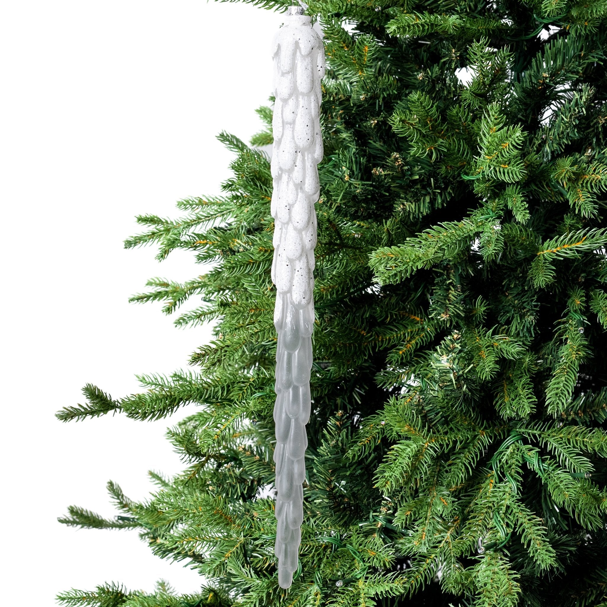 Add a stunning touch to your holiday decor with our Clear 18" Icicle Ornament. Adorned with delicate white glitter, it brings a touch of elegance and sophistication to any space. Its clear design allows for versatile placement, while the glitter adds a subtle sparkle, making it a must-have for any luxury collection.