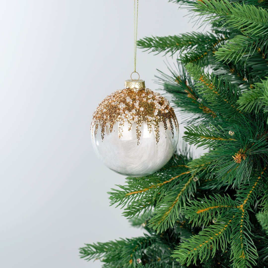 The 10cm Clear Ball Ornament with Feather & Champagne Glitter is a beautifully crafted glass ornament that brings elegance and charm to your holiday décor. Its transparent design allows the delicate feather and champagne glitter inside to catch the light, creating a magical shimmer. Perfect for Christmas trees, garlands, wreaths, or table centerpieces, this mini ornament adds a refined and whimsical touch to any festive arrangement.