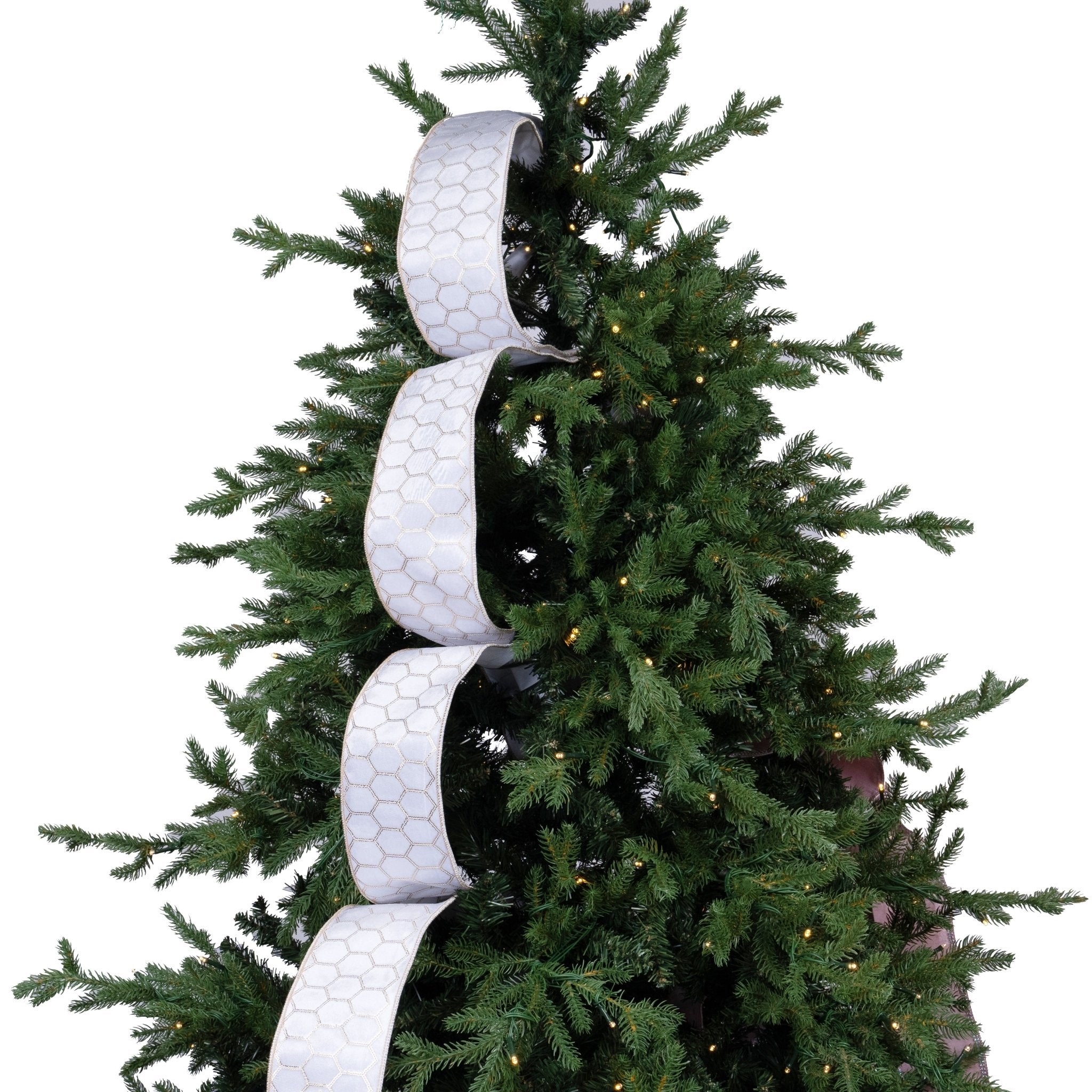 Indulge in luxury with our Velvet Tree Ribbon, featuring an intricate honeycomb pattern. Add an opulent touch to your holiday decor or gift wrapping. Made from soft velvet, this ribbon exudes elegance and sophistication. Transform any ordinary item into a lavish statement piece.