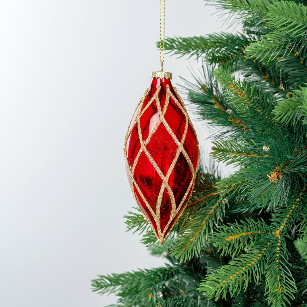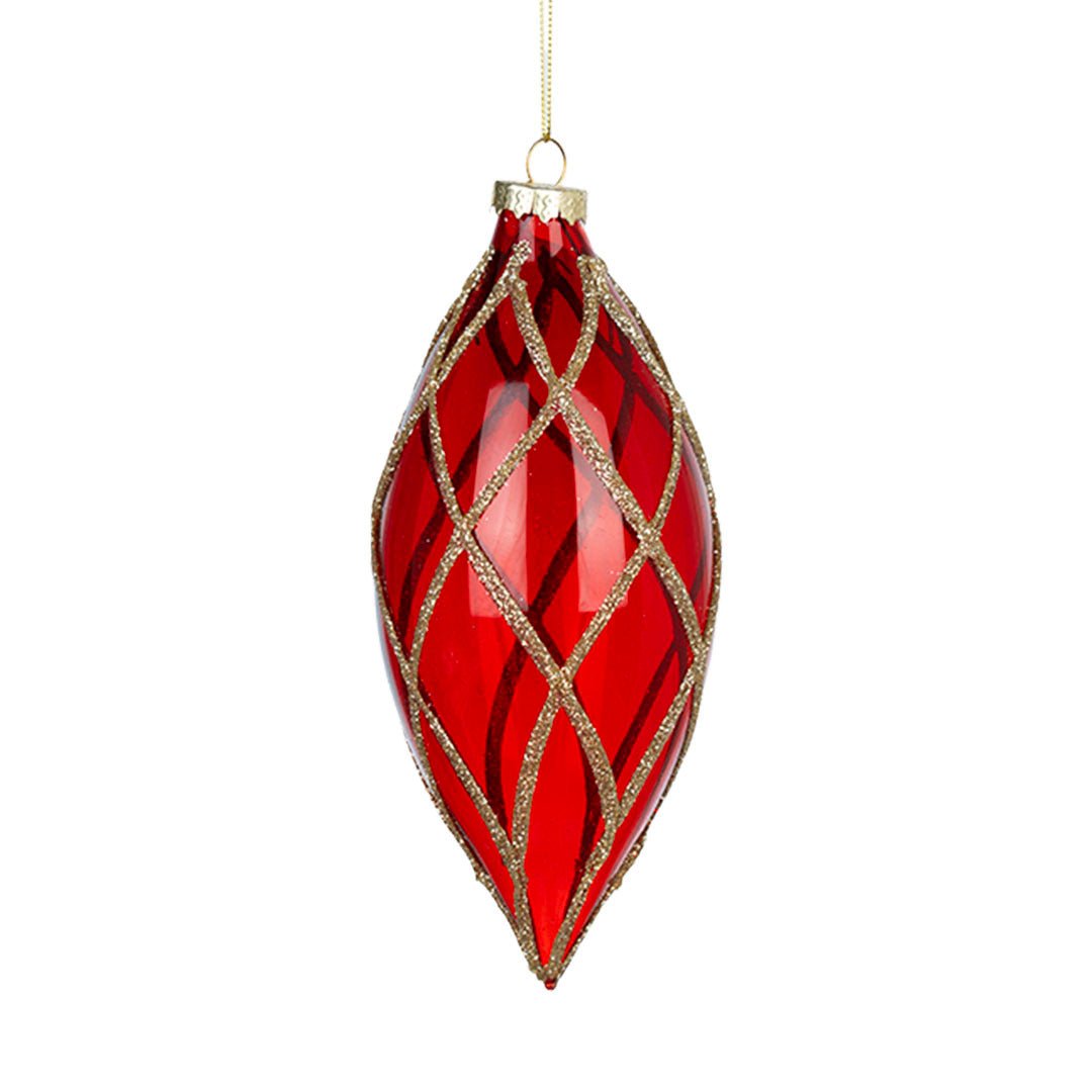 Elevate your holiday décor with the Crystal Red Shuttle Ornament with Glitter Swerves. Crafted from high-quality glass and accented with glitter detailing, this finial-shaped ornament brings a touch of sophistication and festive sparkle to your displays. Perfect for Christmas trees, garlands, or mantel arrangements, it also works beautifully as part of table centerpieces or luxurious holiday décor. Measuring 7.2x16.7cm (2.83x6.57"), it’s a striking accent that pairs perfectly with other premium ornaments for a layered, elegant look.