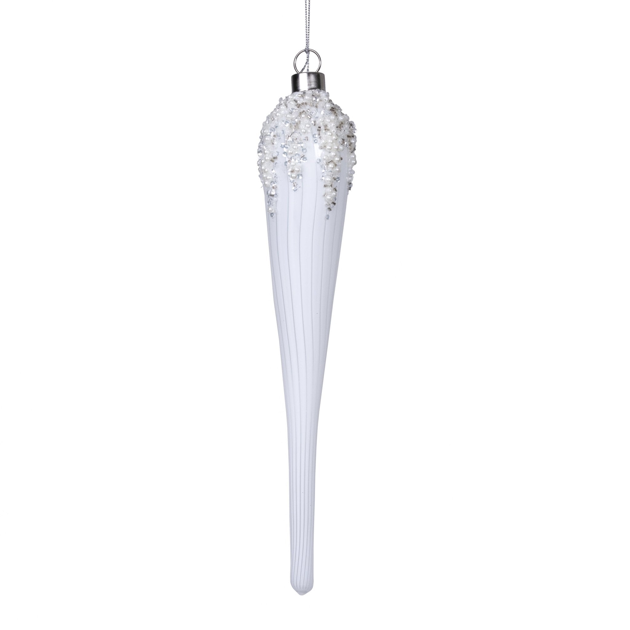 Transform your holiday decor with our Ribbed White Porcelain Finial Ornament. Made from premium porcelain, this elegant ornament adds a touch of sophistication to any Christmas tree. Its ribbed texture and white color provide a subtle yet luxurious look that will elevate your festive aesthetic.