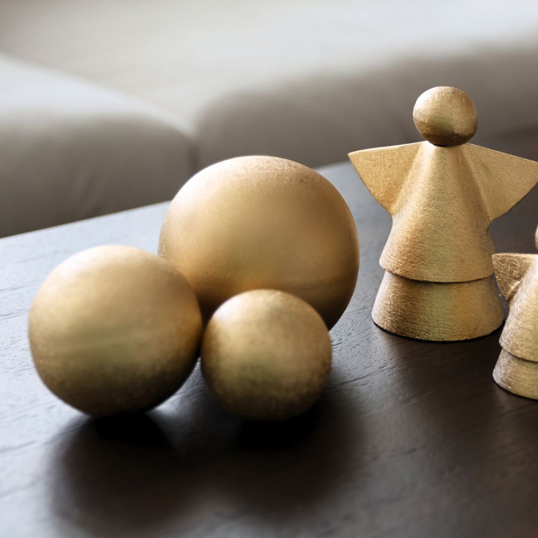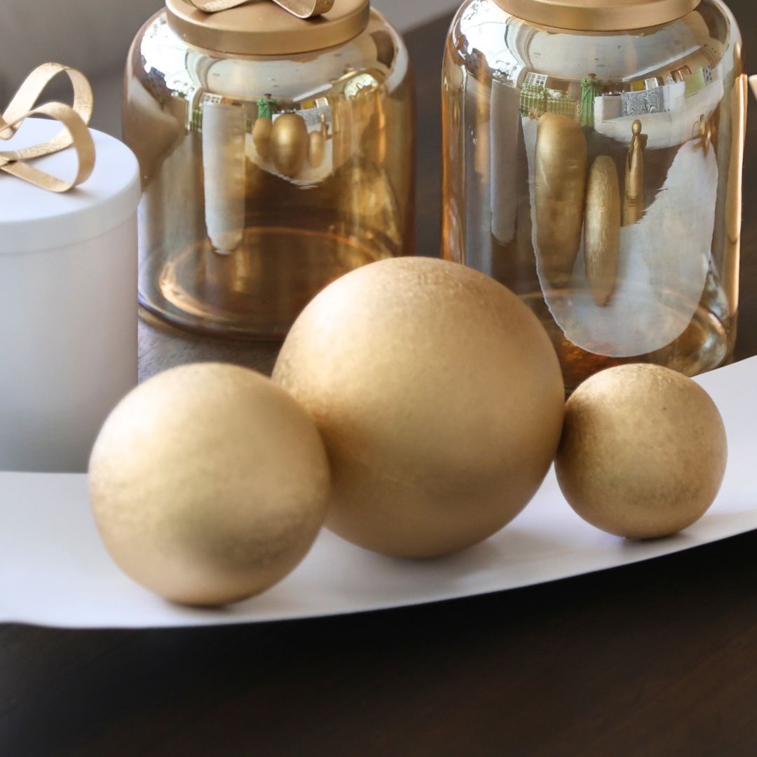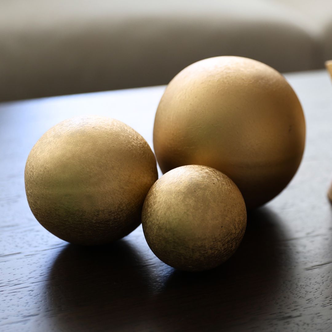 Introducing our Textured Gold Ball Decor Table Top - the perfect touch of luxury for any season. Crafted in a unique shape reminiscent of a Christmas tree ornament, this golden accent piece comes in three sizes that beautifully complement each other. Elevate your tablescape with this sophisticated and exclusive decor.
