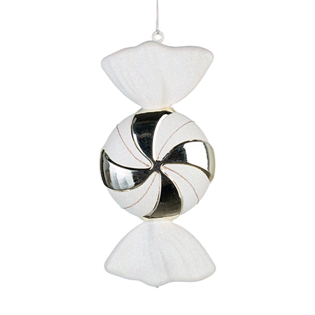 White & Champagne Glitter Swirl Candy Ornament