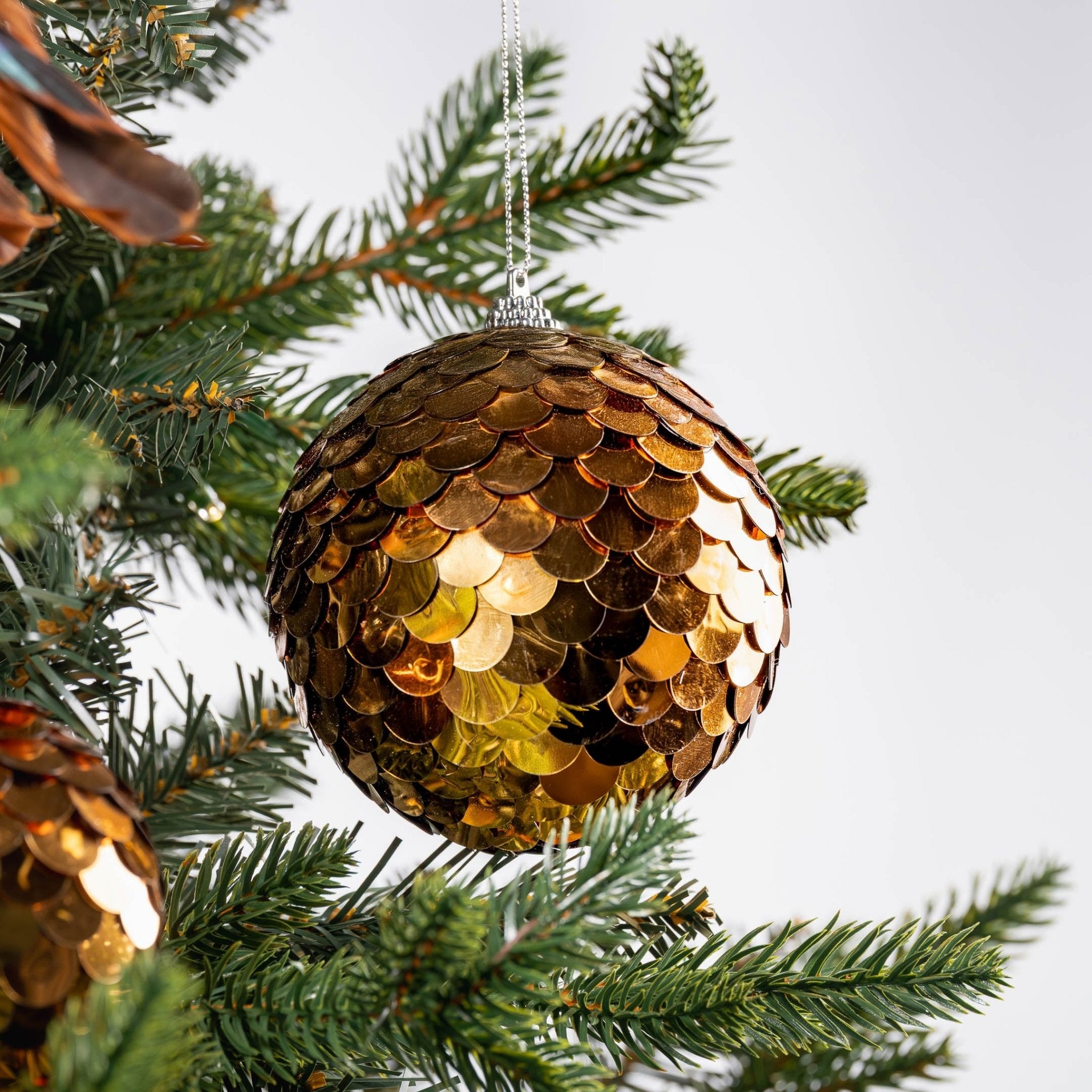 Add dazzle to your holiday decor with this radiant gold sequin ball ornament. Covered in shimmering gold sequins, it brings sparkle and depth to any festive display. Lightweight and versatile, it’s perfect for trees, garlands, or bowls, and comes in two sizes: 8 cm and10 cm.