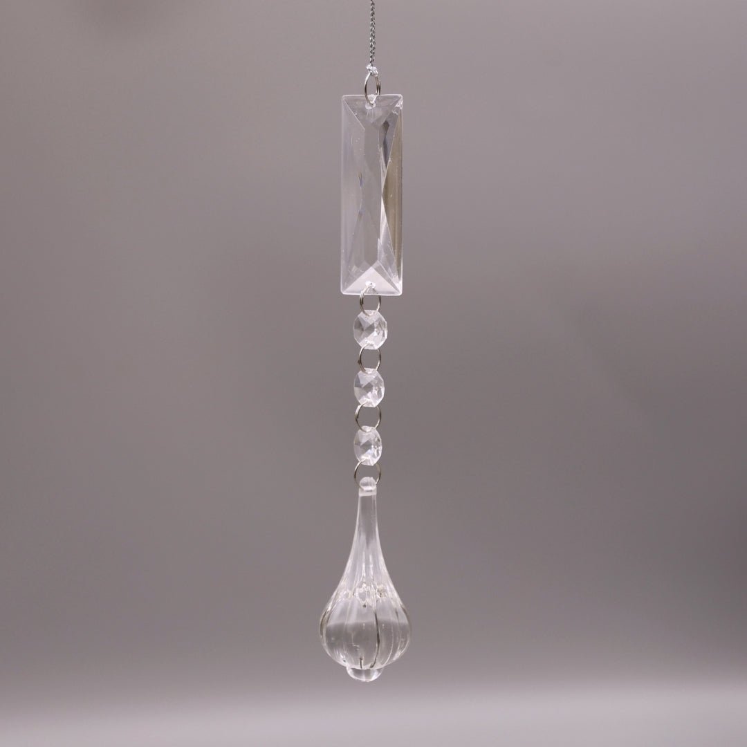 Elegant and glistening, this rectangular ornament features a delicate bead and crystal like water drop that catches festive light beautifully. A refined accent for sophisticated holiday trees, it’s perfect for elegant, modern, or glam themed décor.