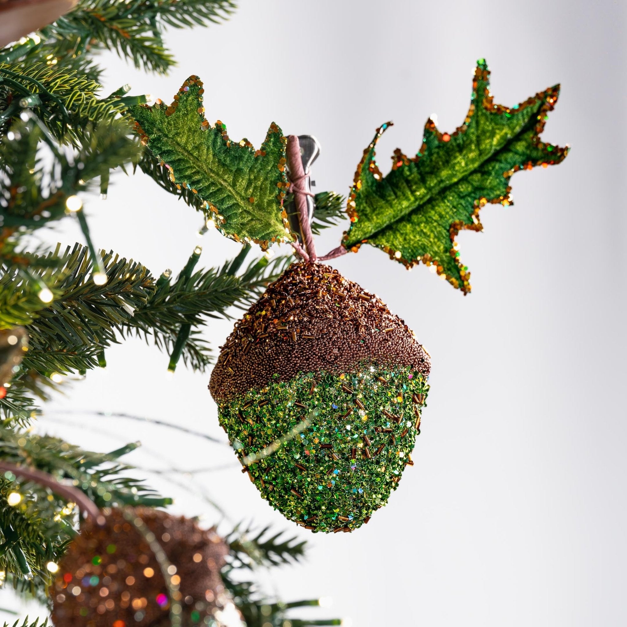 Add woodland luxury to your décor with this encrusted acorn clip ornament. Its jewel encrusted surface brings subtle sparkle and natural charm, perfect for trees, wreaths, or garlands.