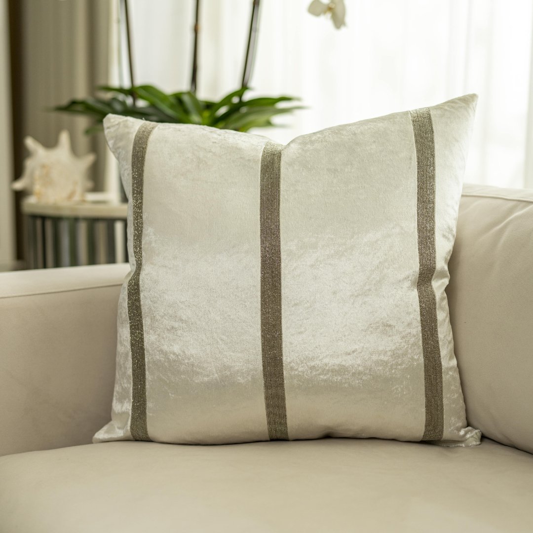 Neutral, yet elegant with a touch of sparkle. The Irony Home Selene Ivory Cushion is the perfect addition to your room's decor.