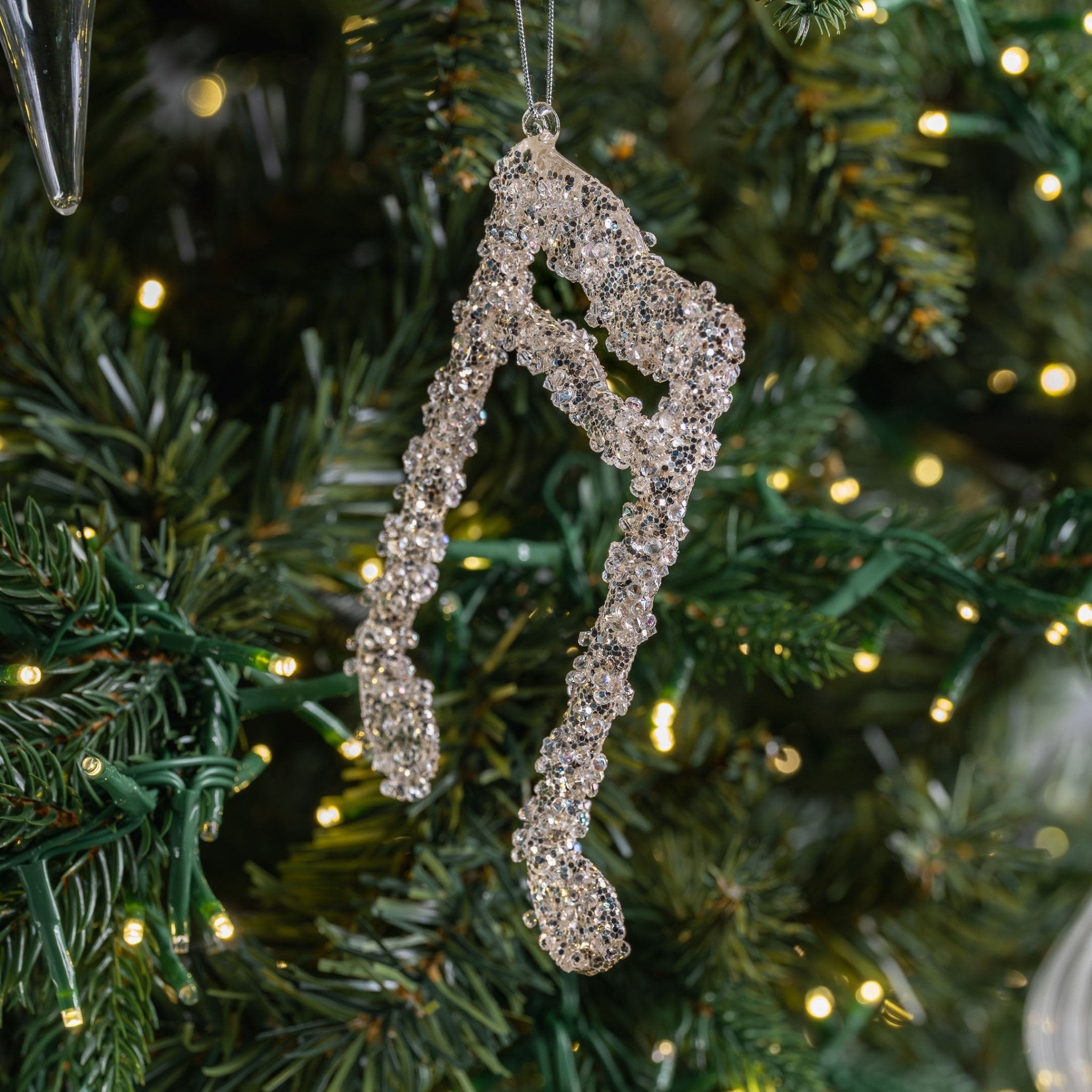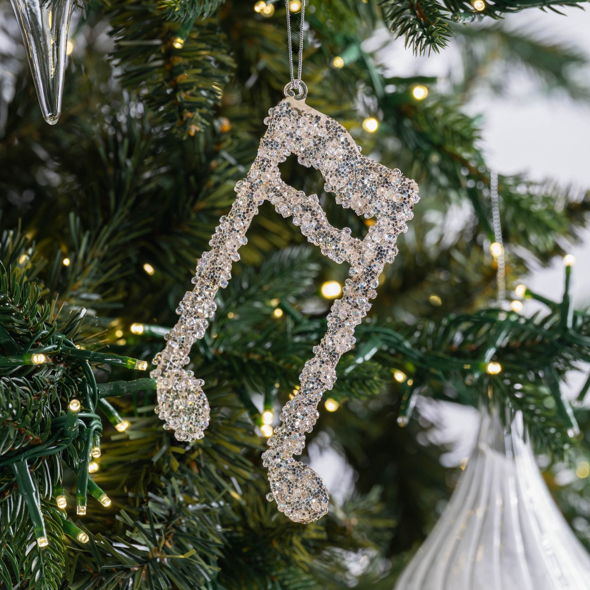 This elegant silver music note ornament brings harmony and shine to holiday decor. With its metallic finish and delicate detailing, it adds a lyrical touch of charm and sophistication. Lightweight and easy to hang, it’s a festive favorite for musicians and creatives alike.