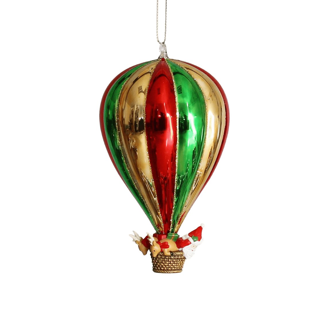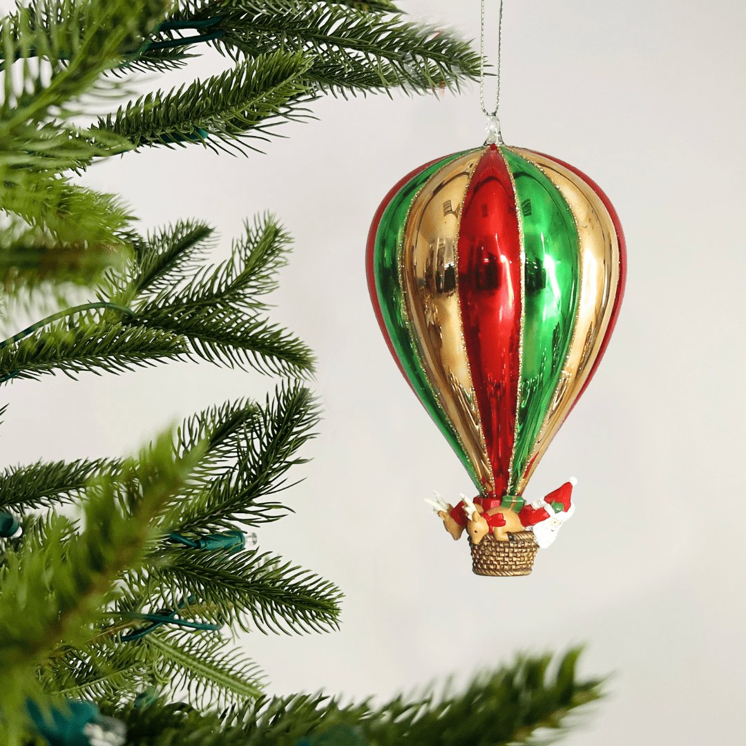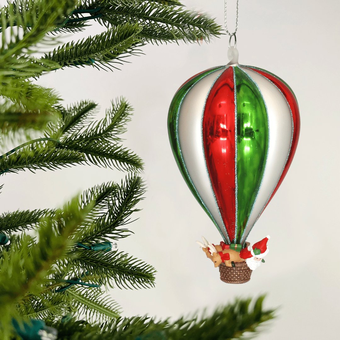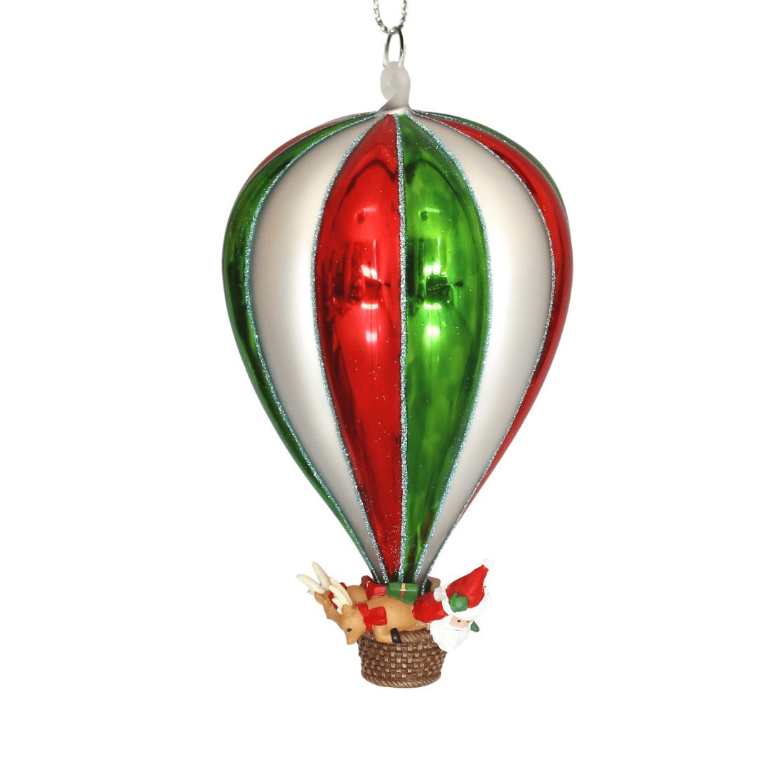 Traditional Glass Air Balloon Ornament with Santa and Reindeer