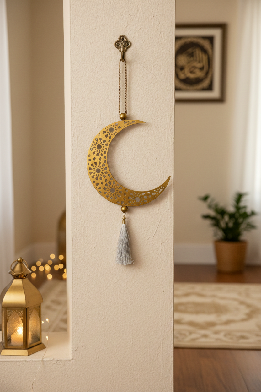 Illuminate your Ramadan décor with the refined elegance of the Crescent Radiance Tassel Ornament. Designed with intricate metal filigree and finished with a soft, ivory tassel, this ornament captures the serene beauty of the crescent moon. Its warm metallic glow and delicate craftsmanship bring sophistication to any festive setting — whether displayed individually or as part of a curated Ramadan arrangement.