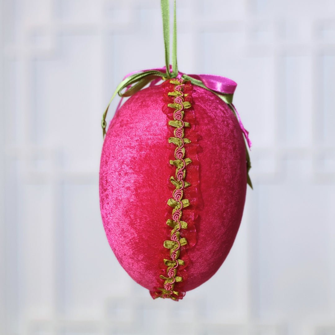 Infuse some fancy flair into your Easter setup with our Velvet Easter Egg ornament. Crafted from velvety fabric, this egg-shaped piece is ideal for adding charm and sophistication to your holiday decor.