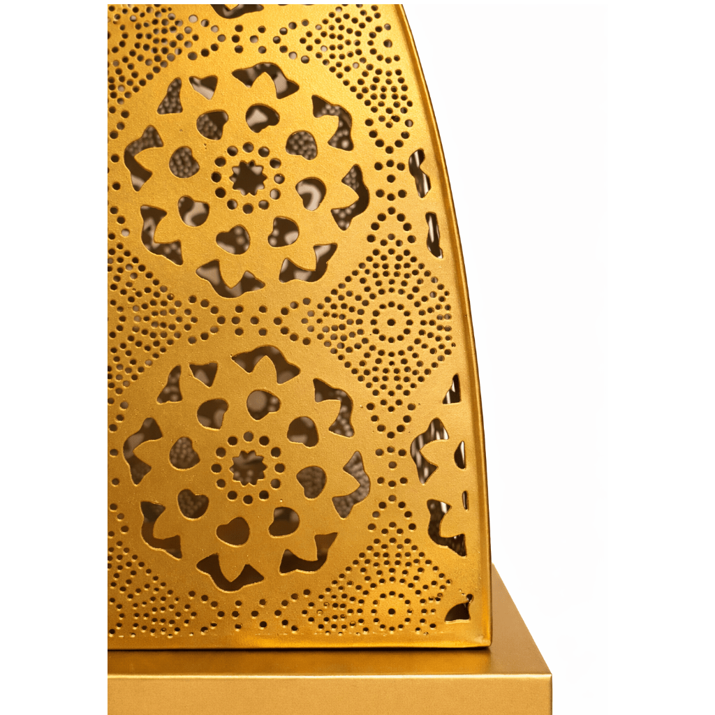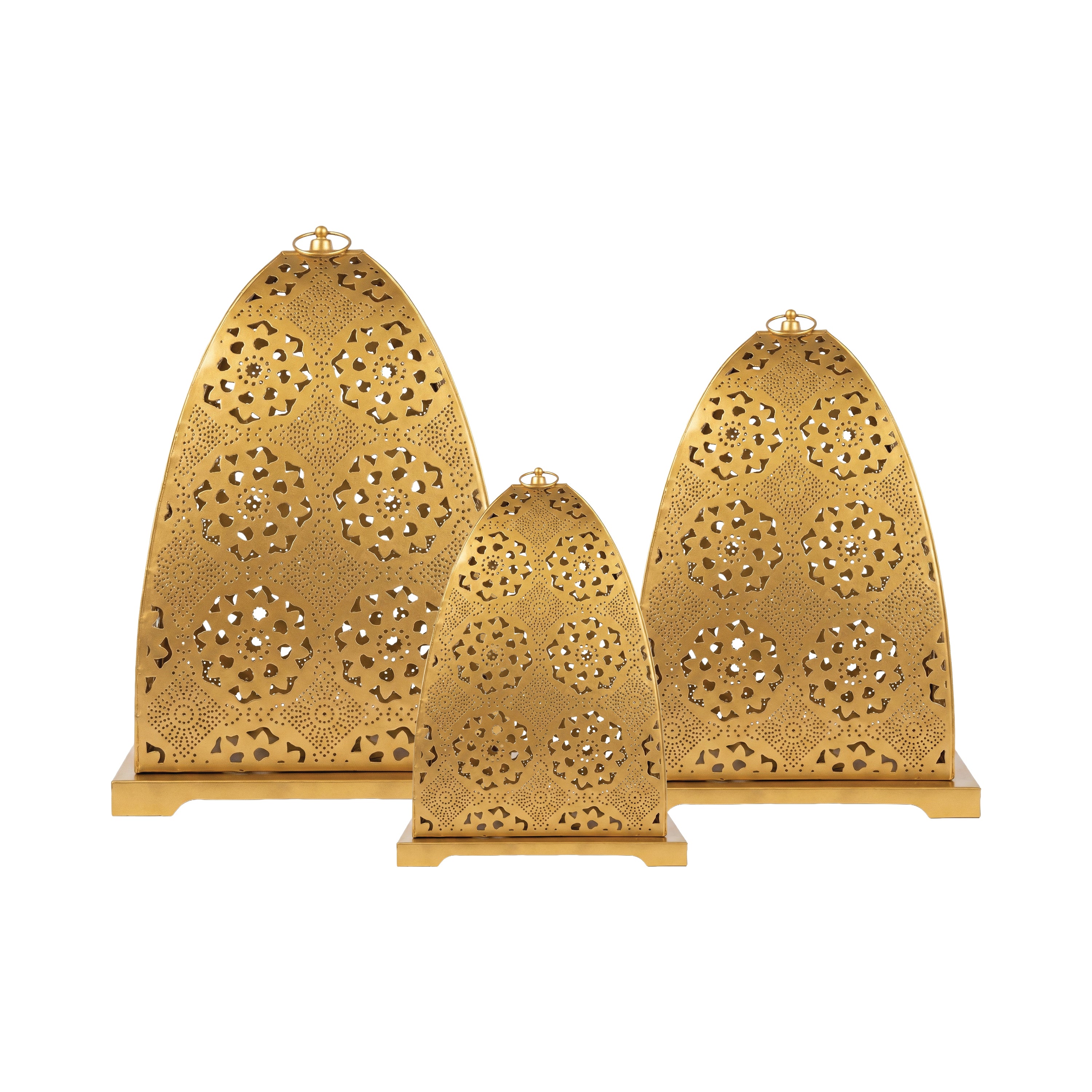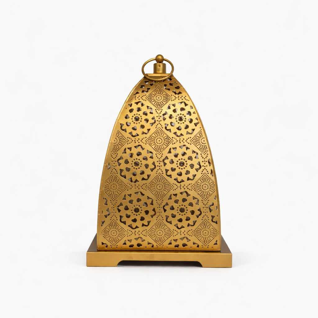 Illuminate your home with the enchanting elegance of our Gold Floral Lantern Collection. Designed with a unique curved-triangular dome silhouette and intricate floral filigree cutouts, each lantern casts mesmerizing patterns of light that transform your space into a warm and inviting sanctuary.