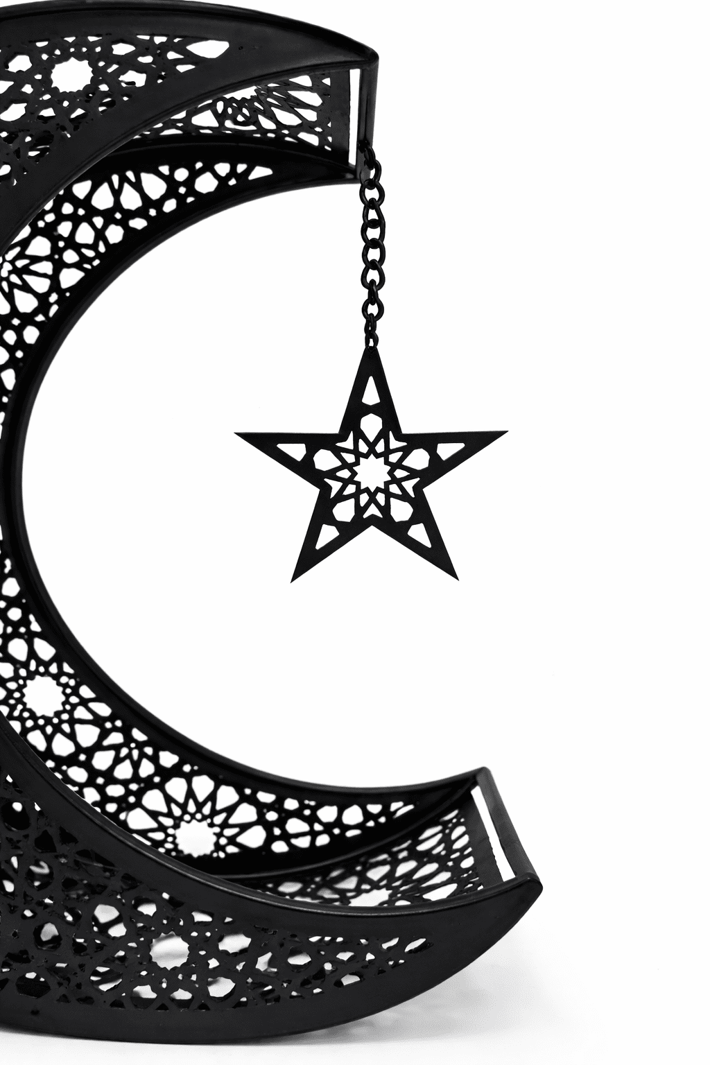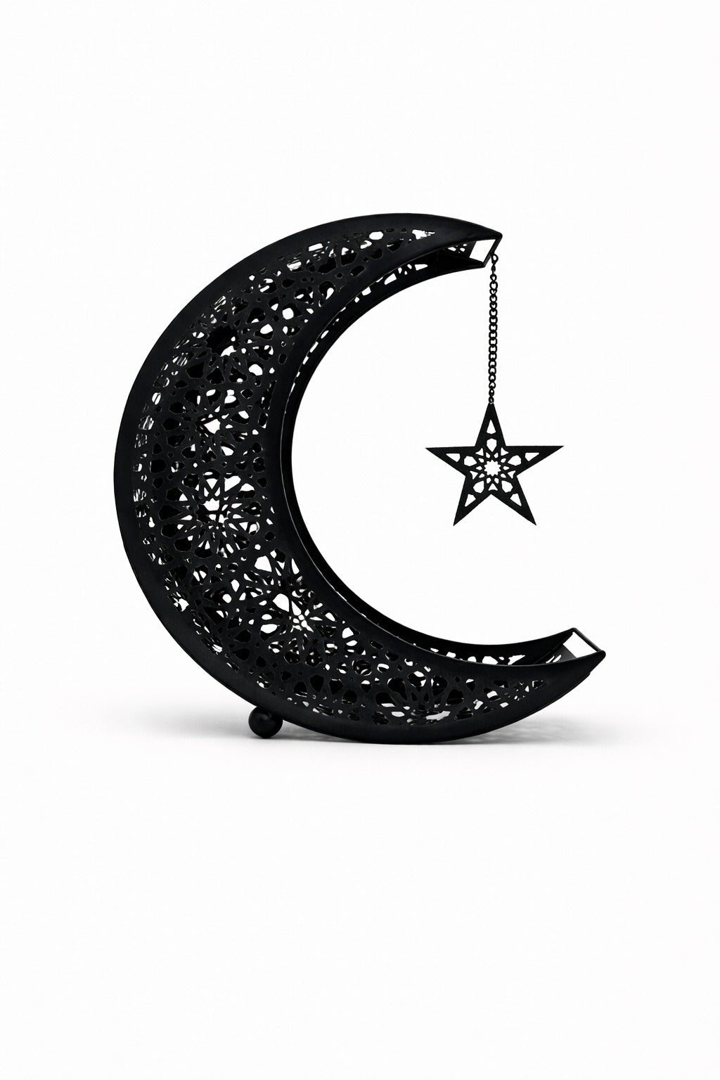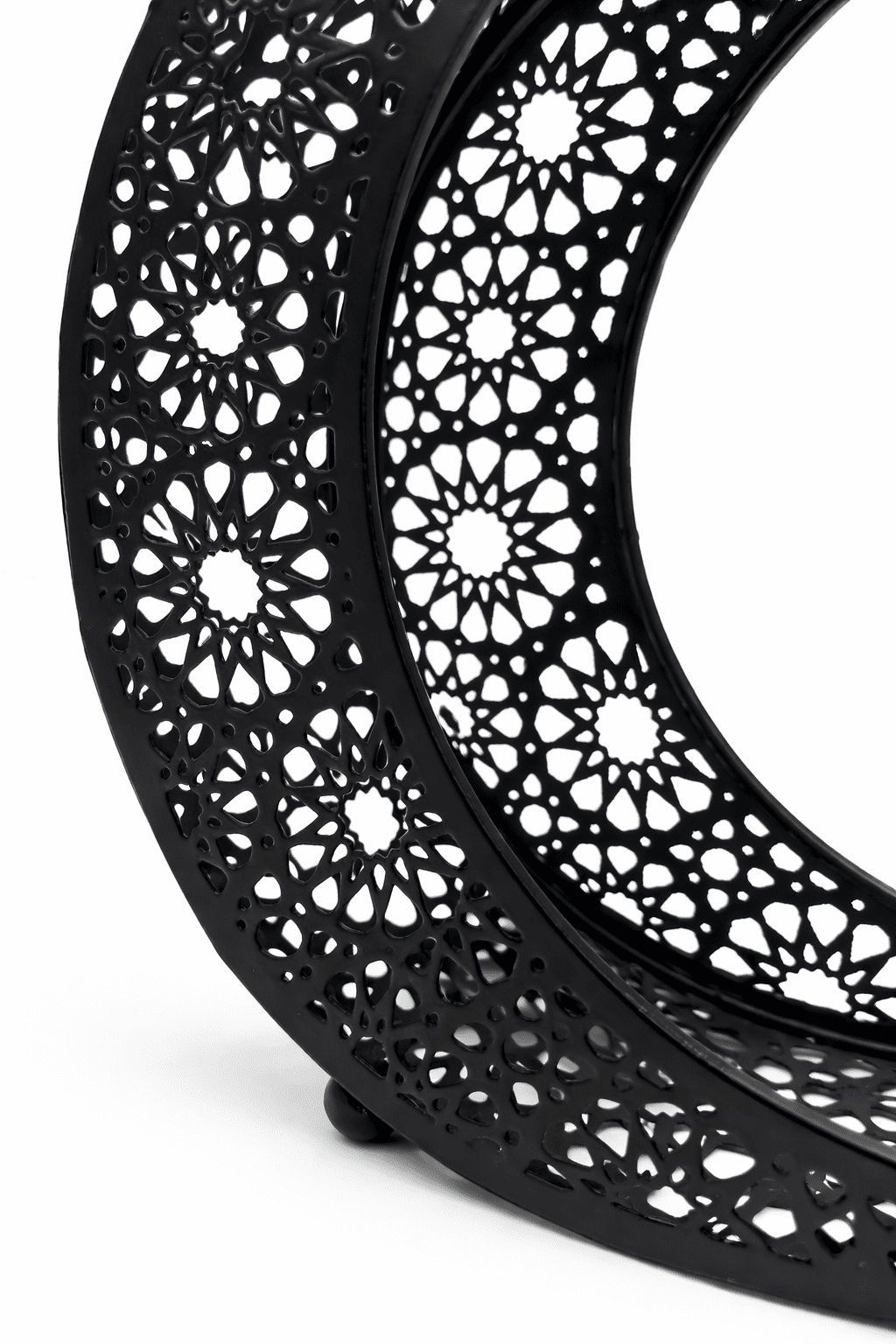 Bold, modern, and visually captivating—the Grand Obsidian Crescent Prestige brings a contemporary luxury feel to your Ramadan décor. Its deep matte-black finish combined with ornate lattice detailing creates a striking contrast, making this crescent a powerful statement piece in sophisticated homes.
