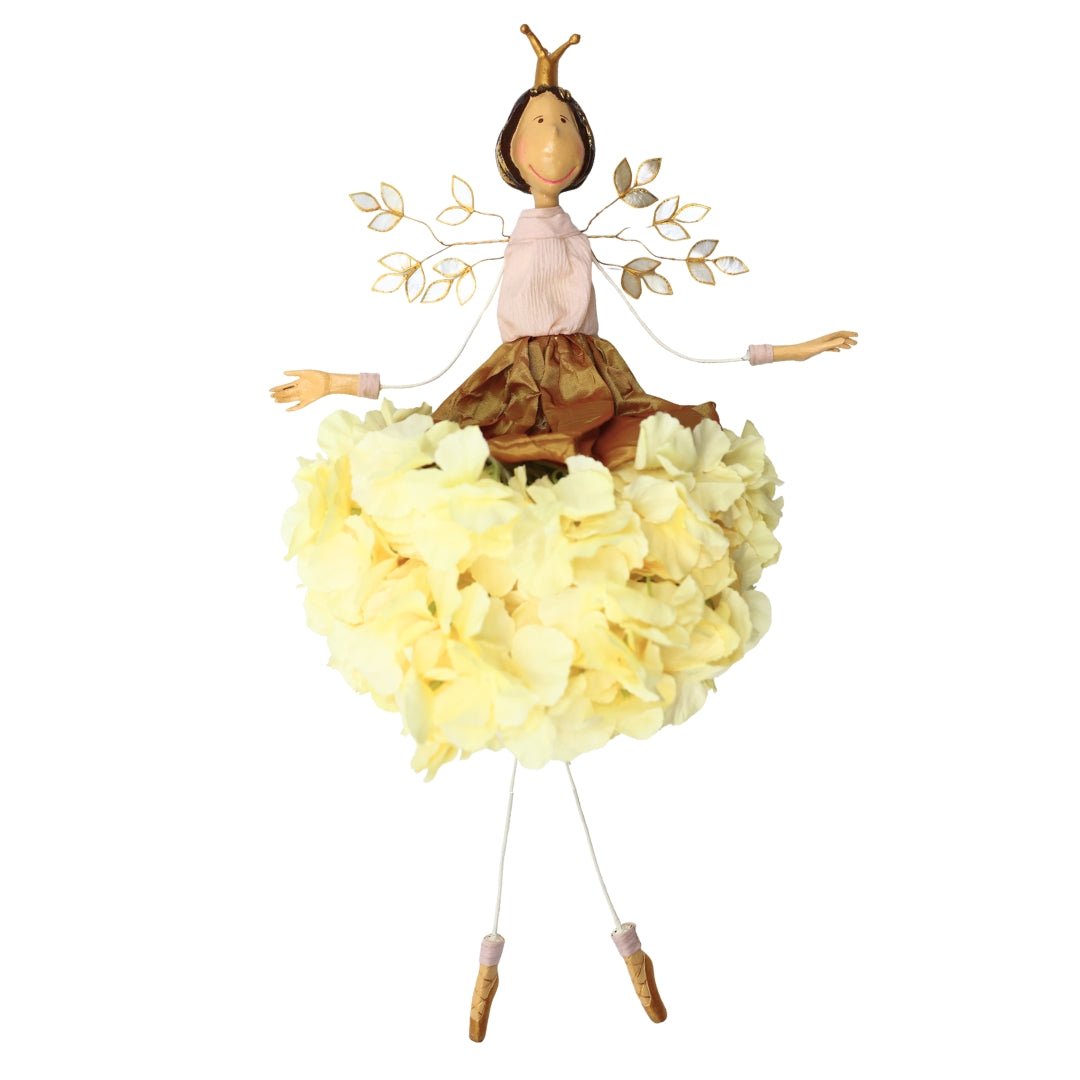 Delight your decor with the whimsical Madeline Fairy, featuring a flowing hydra skirt and shimmering capiz wings. Expertly crafted with delicate details, she adds magical charm and elegance to any display. Available in two enchanting colors: Teal and Gold.