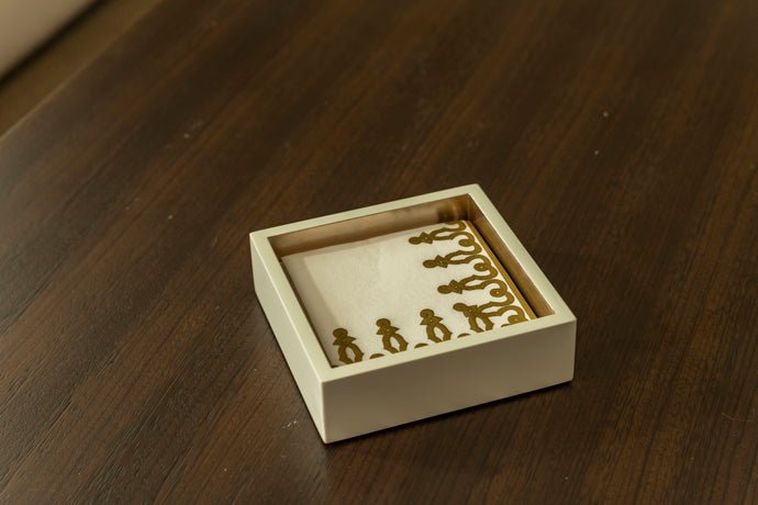 Our napkin holders are an easy addition to your tabletop decor. Use them to keep napkins neatly presented and always within reach in your dining room, on your coffee table, kitchen counter, or in a guest bath. Available in a variety of colors, they're designed to coordinate with your favorite Caspari napkin designs.