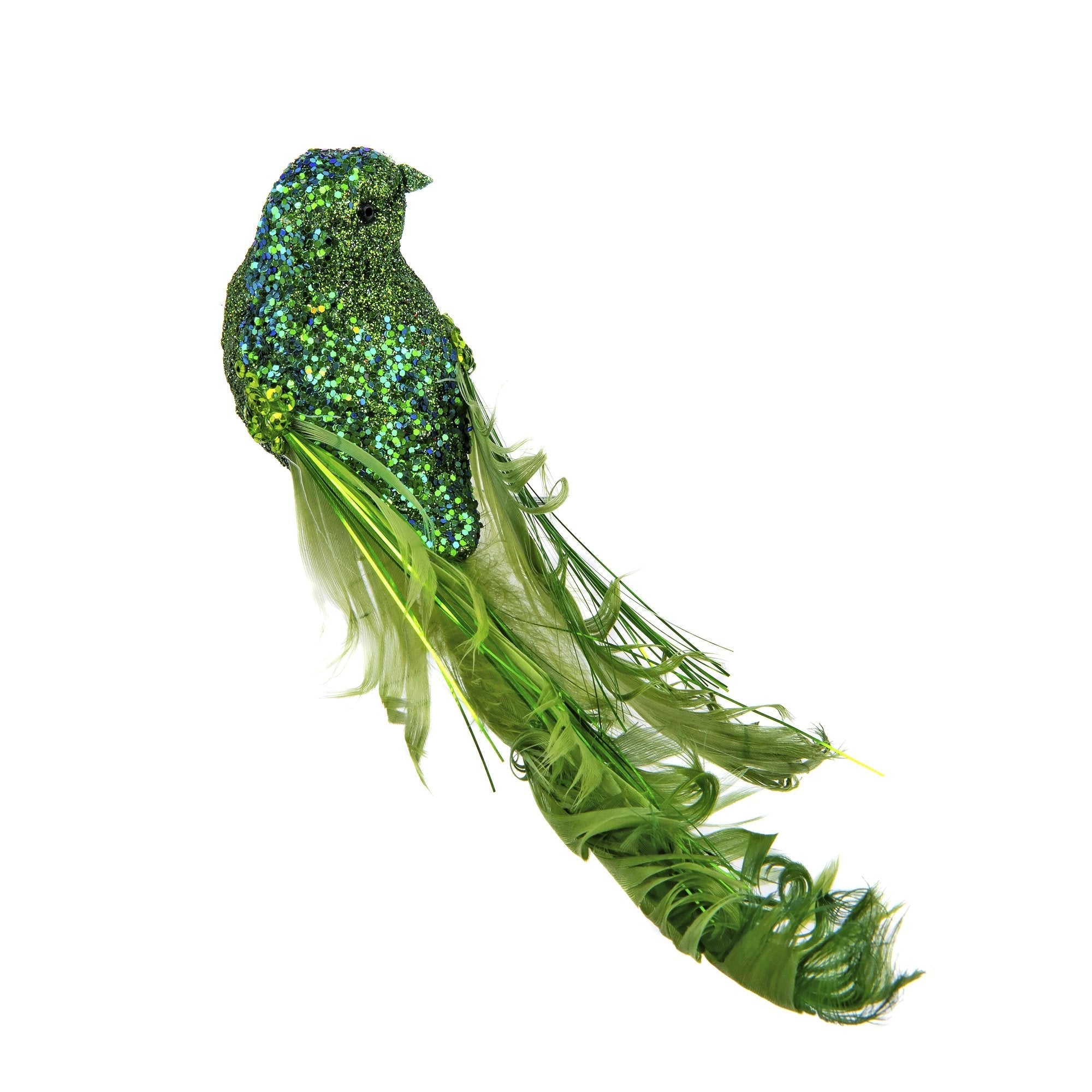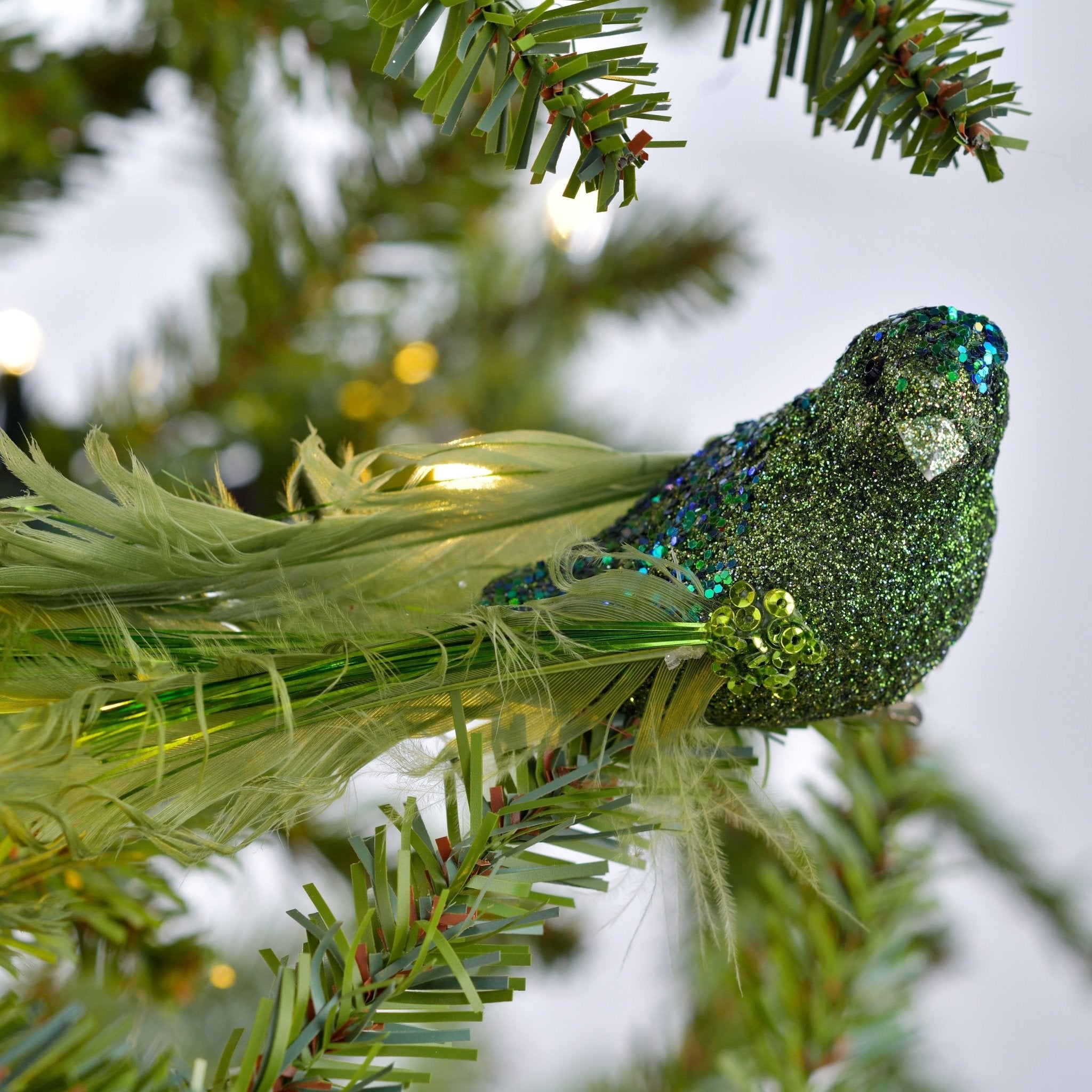 Add a touch of elegance to your holiday decor with this exquisite Blue & Green Song Bird Clip-on Ornament. The vibrant colors and delicate details of this premium ornament will make your tree come alive, creating a luxurious and tasteful atmosphere. Its clip-on design allows for easy placement and versatility.This sequined blue and green bird ornament will look charming and endearing perched on your Christmas tree.