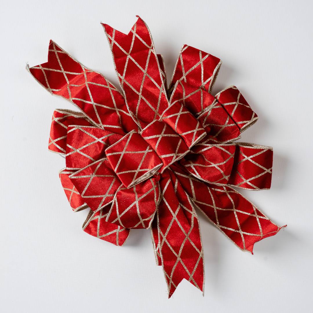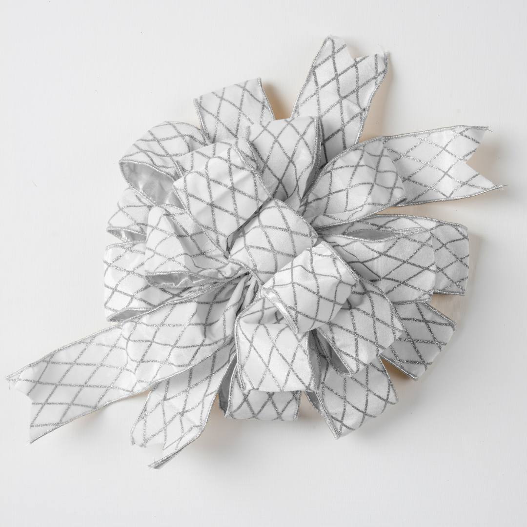 Elevate your holiday decor or gift wrapping with this stunning diamond lattice bow, featuring a shimmering finish and structured design for timeless elegance. Perfect for adding sparkle and dimension to trees, wreaths, or gifts. Available in Red, White & Gold, White & Silver, and Champagne.