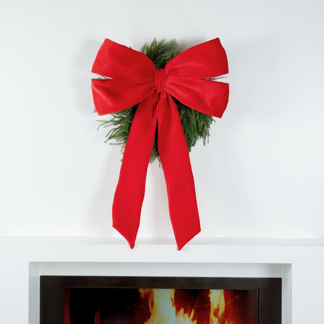 Create a striking festive focal point with the Wired Velvet Bow, featuring rich velvet texture and flexible wiring to maintain a flawless shape all season. Ideal for oversized wreaths, grand staircases, doorways, or large Christmas trees. Available in Red, Cream, Pink, Blue, and Burgundy.