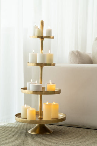 This Natural Tier Cake Stand in Gold lends sophistication and elegance to any celebration. Crafted from natural materials, its luxurious gold finish brings refinement to any table. Standing tall to showcase delectable cakes in grandeur, it's the perfect way to make your event stand out.
