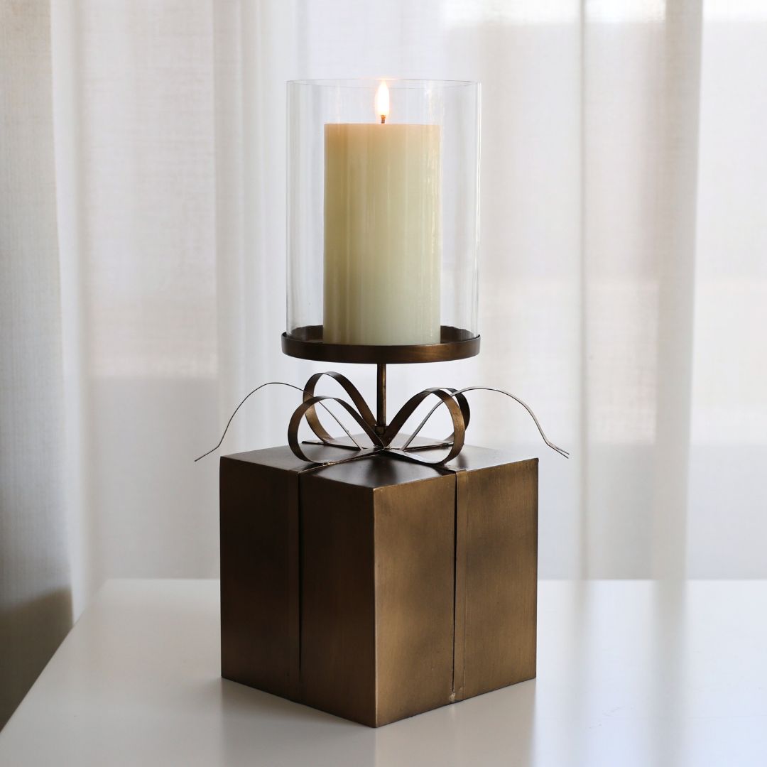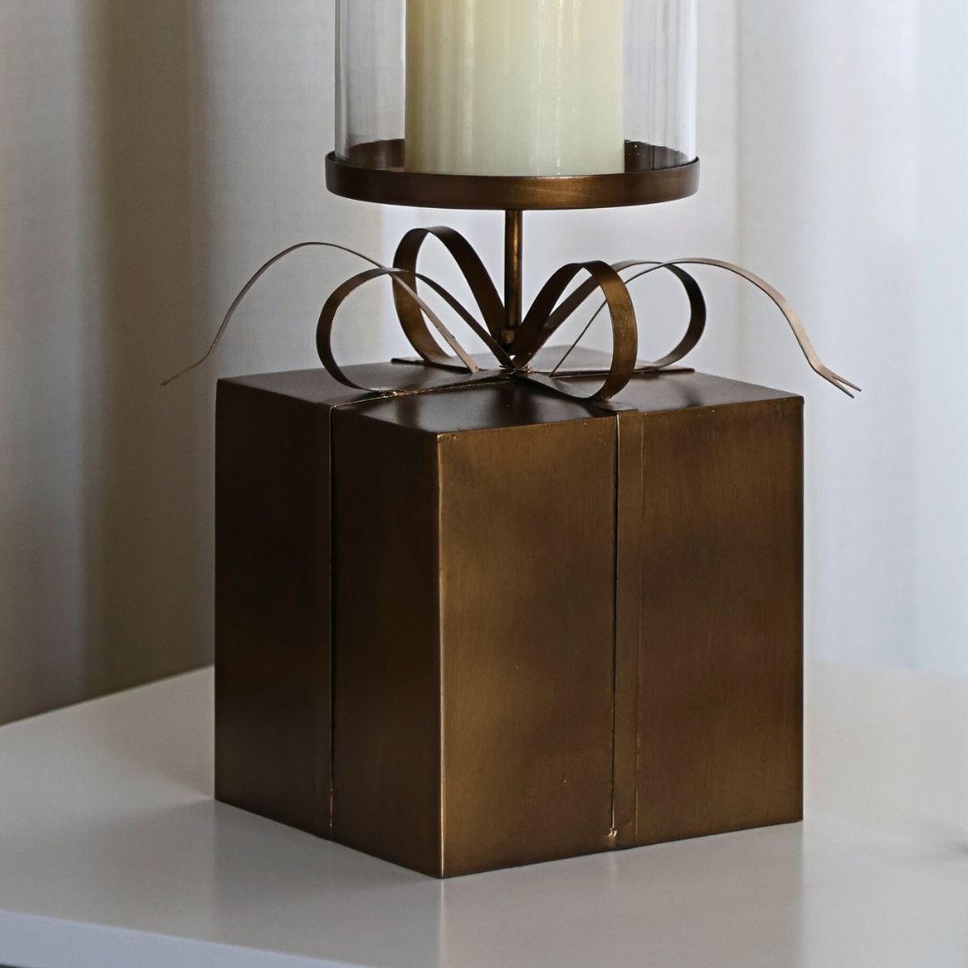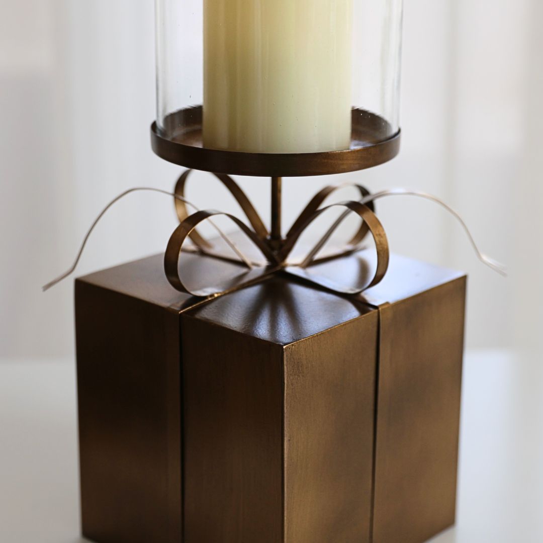 Gold Tarnish Gift-Box Base Hurricane Candleholder