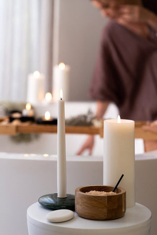Every stylish candle needs a stylish home. The Chamber is a unique candleholder made with a quality marble finish to offer a useful base for your candle. Beautiful to look at and easy to use with a useful indent for easy holding.