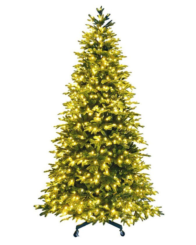 This classic pre-lit new Fraser fir Christmas tree with 900 LED lights (220 volts) and wheels for added support and movement is an absolute must-have this festive season!