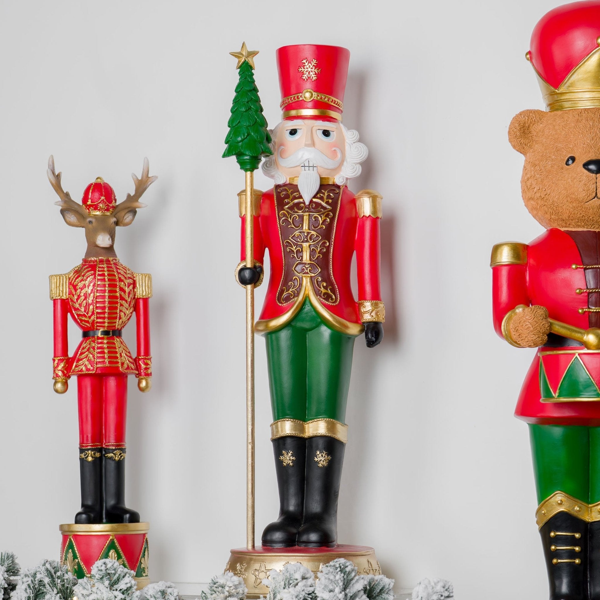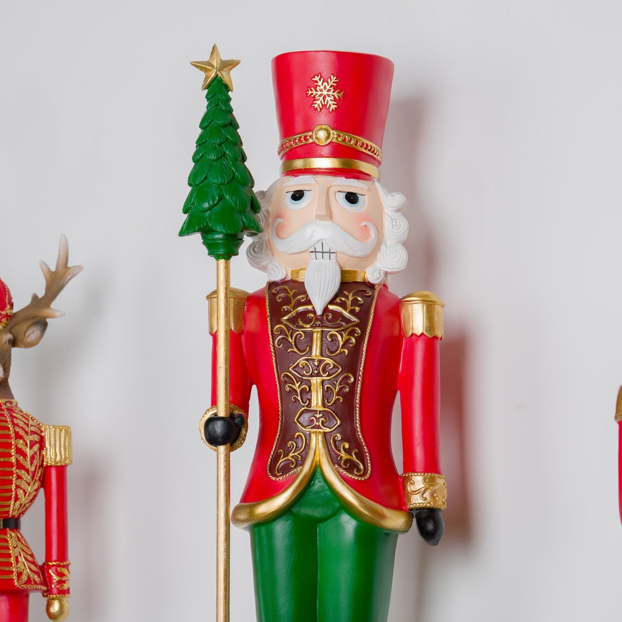 A timeless symbol of holiday tradition and cheer, this toy soldier proudly presents a miniature Christmas tree in hand. Finely detailed in traditional holiday colors, it adds festive charm and is ideal for entryways, mantels, or vintage themed displays.