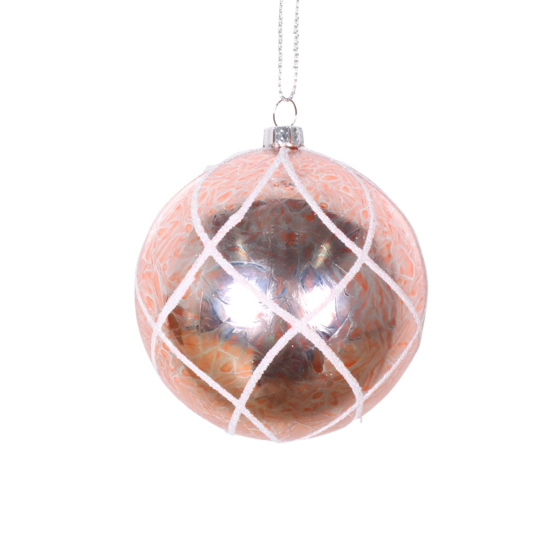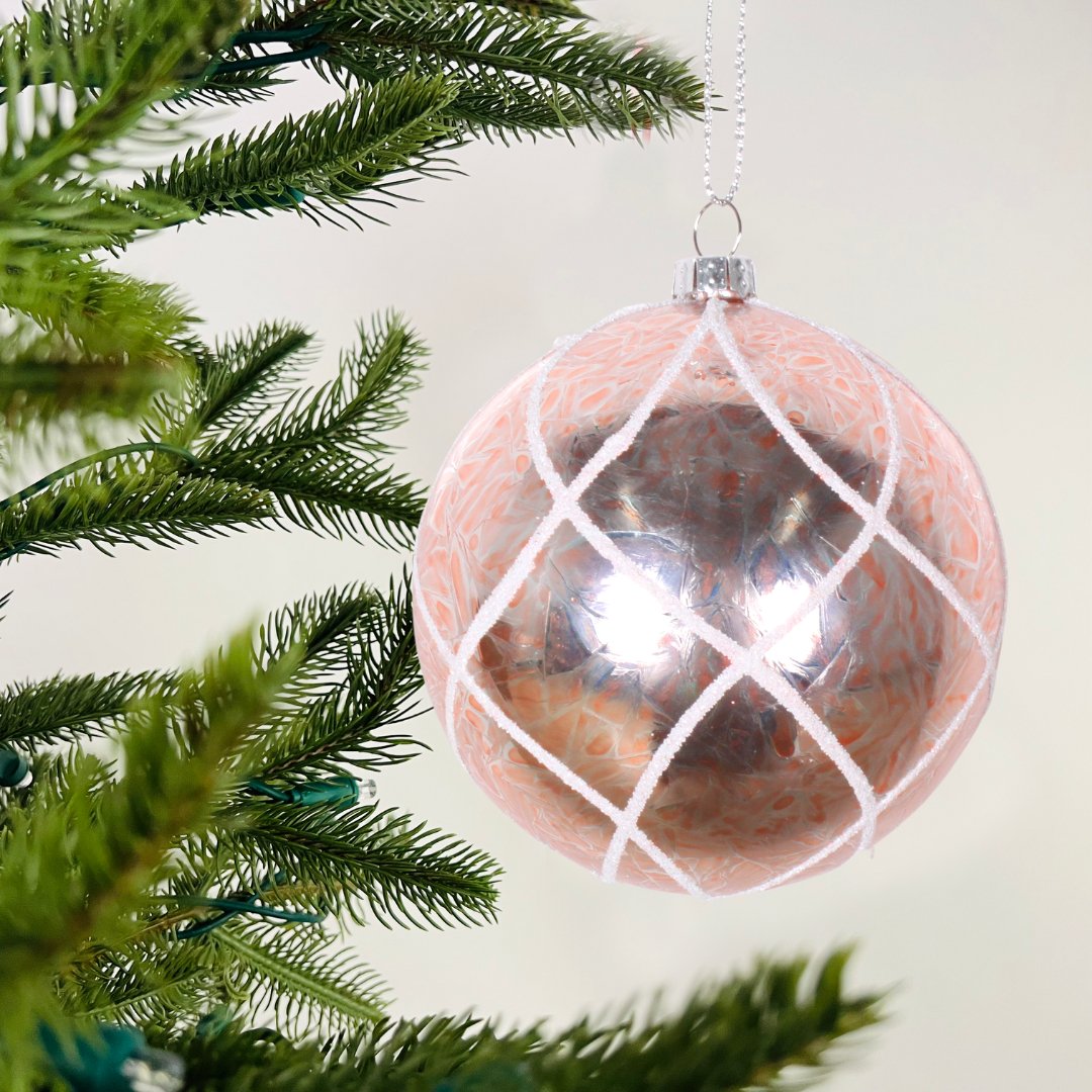 Created with a stunning ice crackle finish, this beautiful patterned metallic pink Christmas tree ornament will add to the beauty of your festive decorations and set the tone for an opulent celebration all season long.