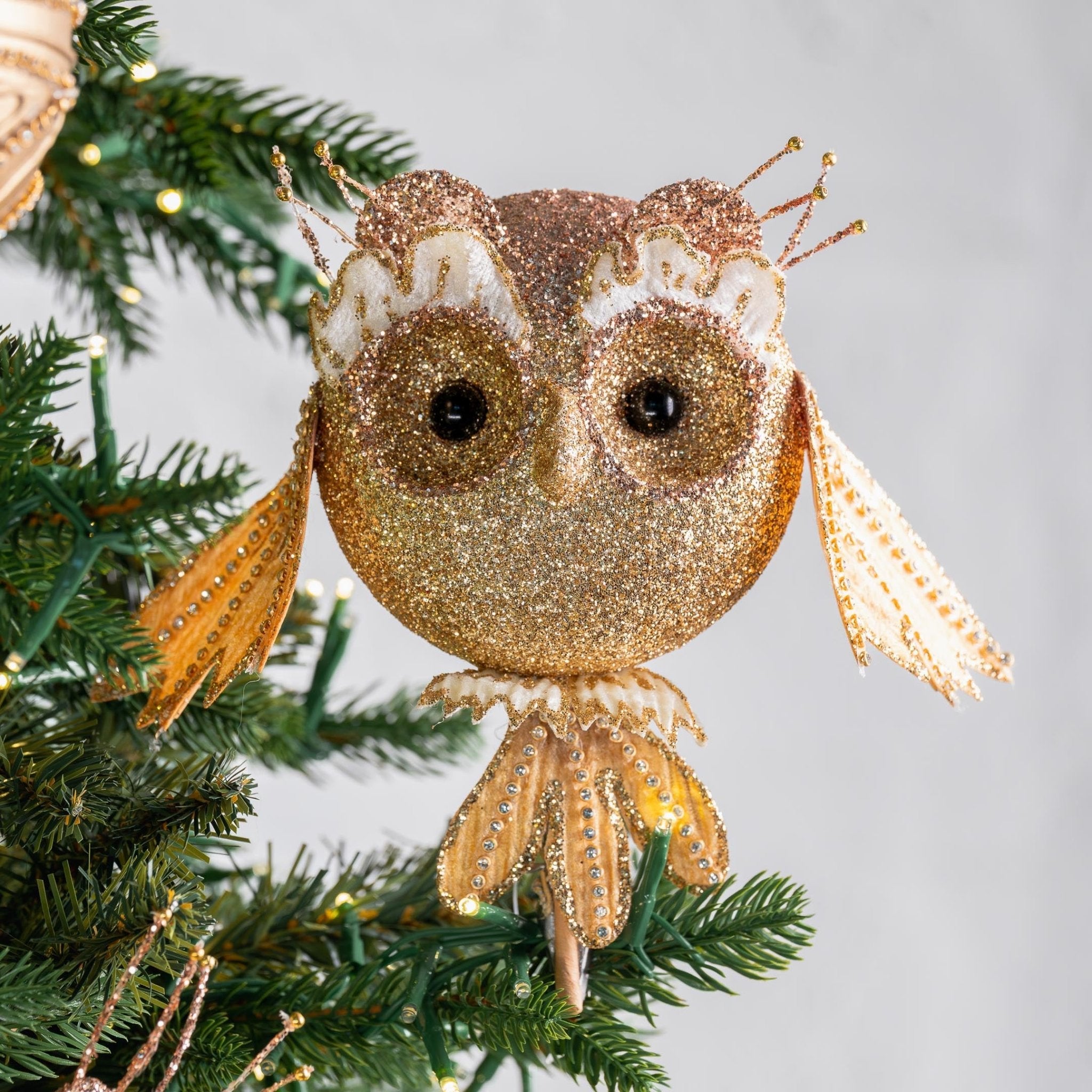 Bring a touch of woodland whimsy to your festive display with the Fancy Owl Clip Ornament. Intricately crafted, this charming owl adds personality and elegance to wreaths, trees, or garlands. Available in small and large sizes.