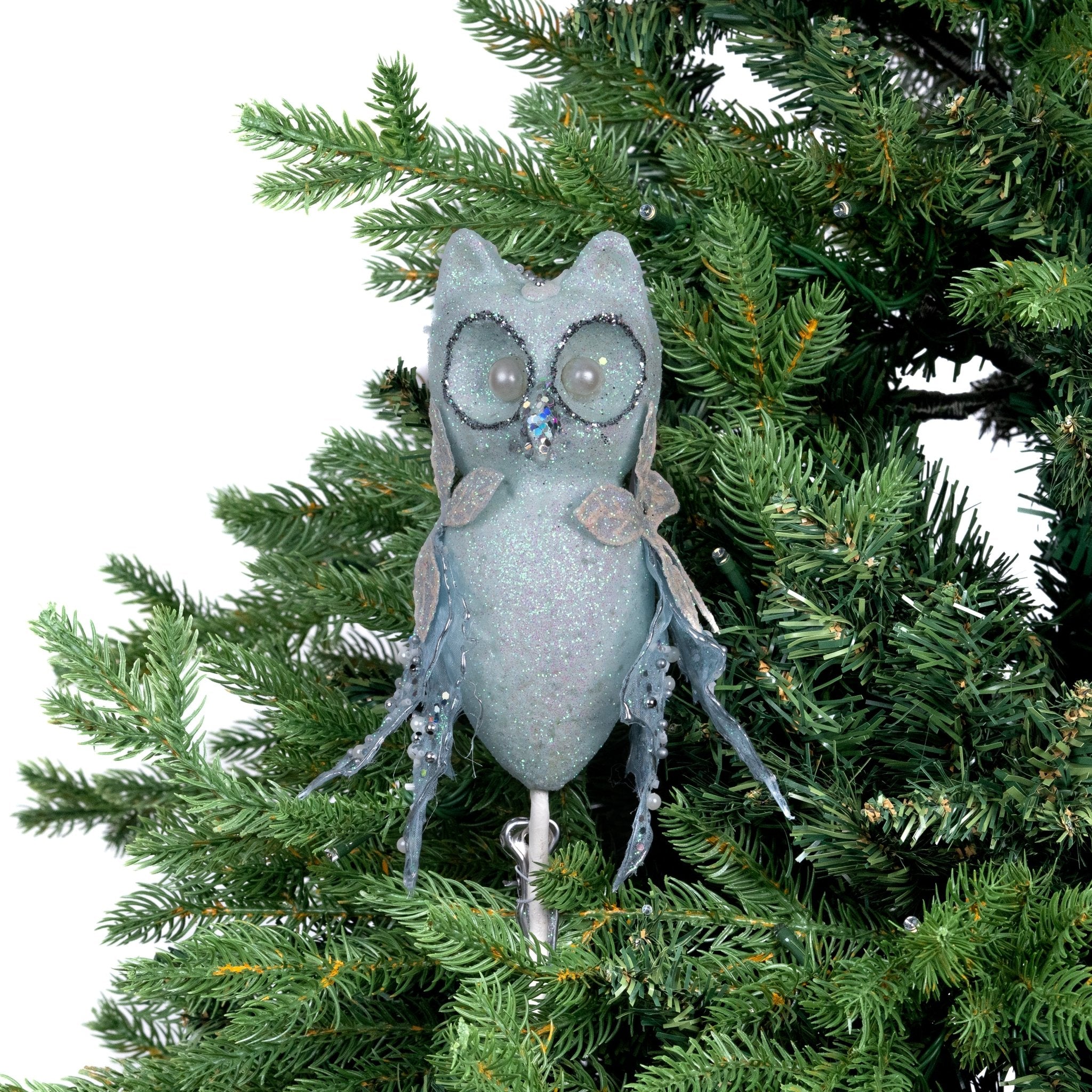 Indulge in the opulence of our Pastel Blue Festive Owl Ornament with Sequins. Adorned with delicate sequins and crafted in a luxurious pastel blue hue, this ornament adds a touch of elegance to any holiday decor. Let this charming owl bring a touch of sophistication and whimsy to your home.