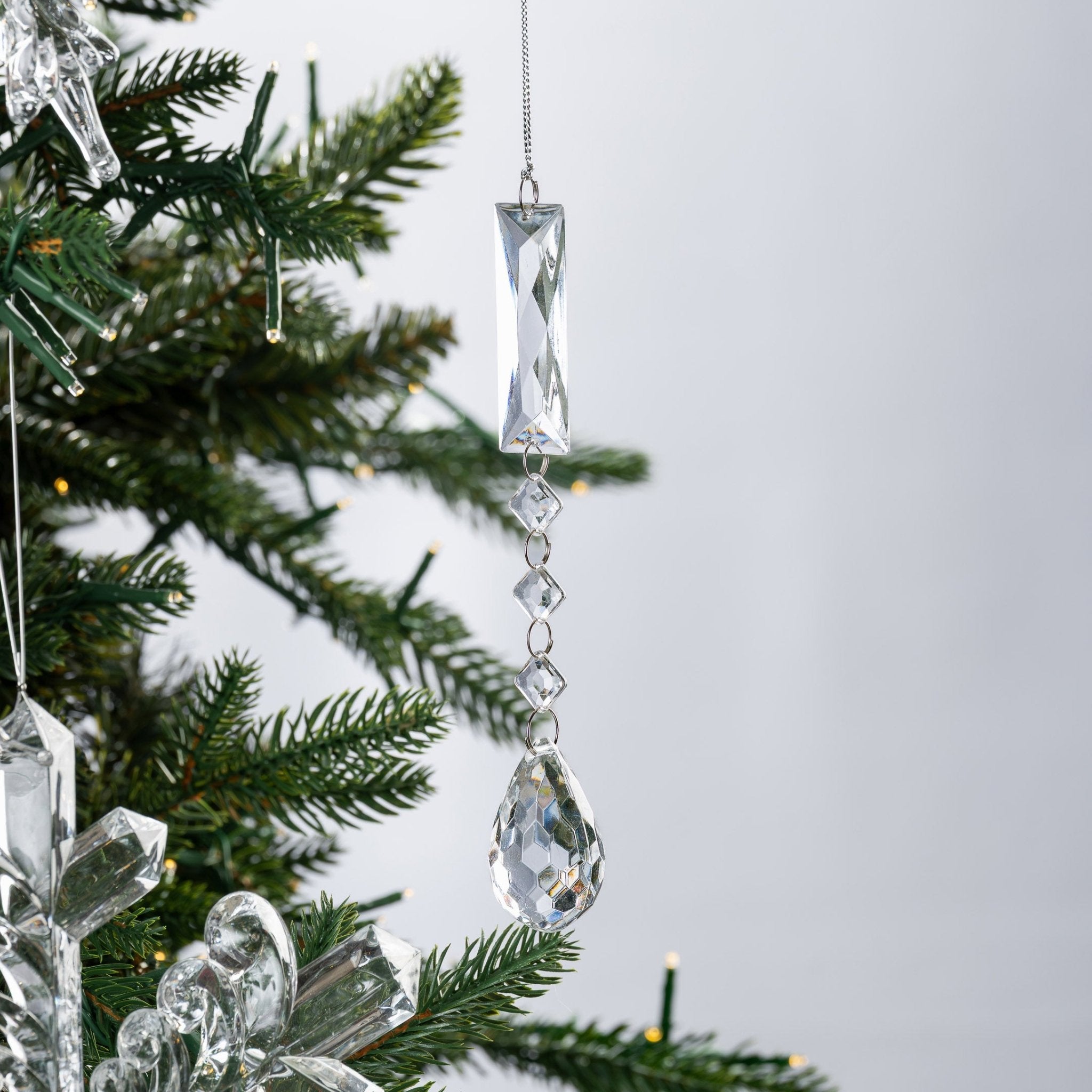 Add refined elegance to your tree with this rectangular ornament, featuring a glistening bead and teardrop accent. Its minimalist shape and radiant crystal bring delicate sparkle, perfect for classic, modern, or luxe holiday décor.