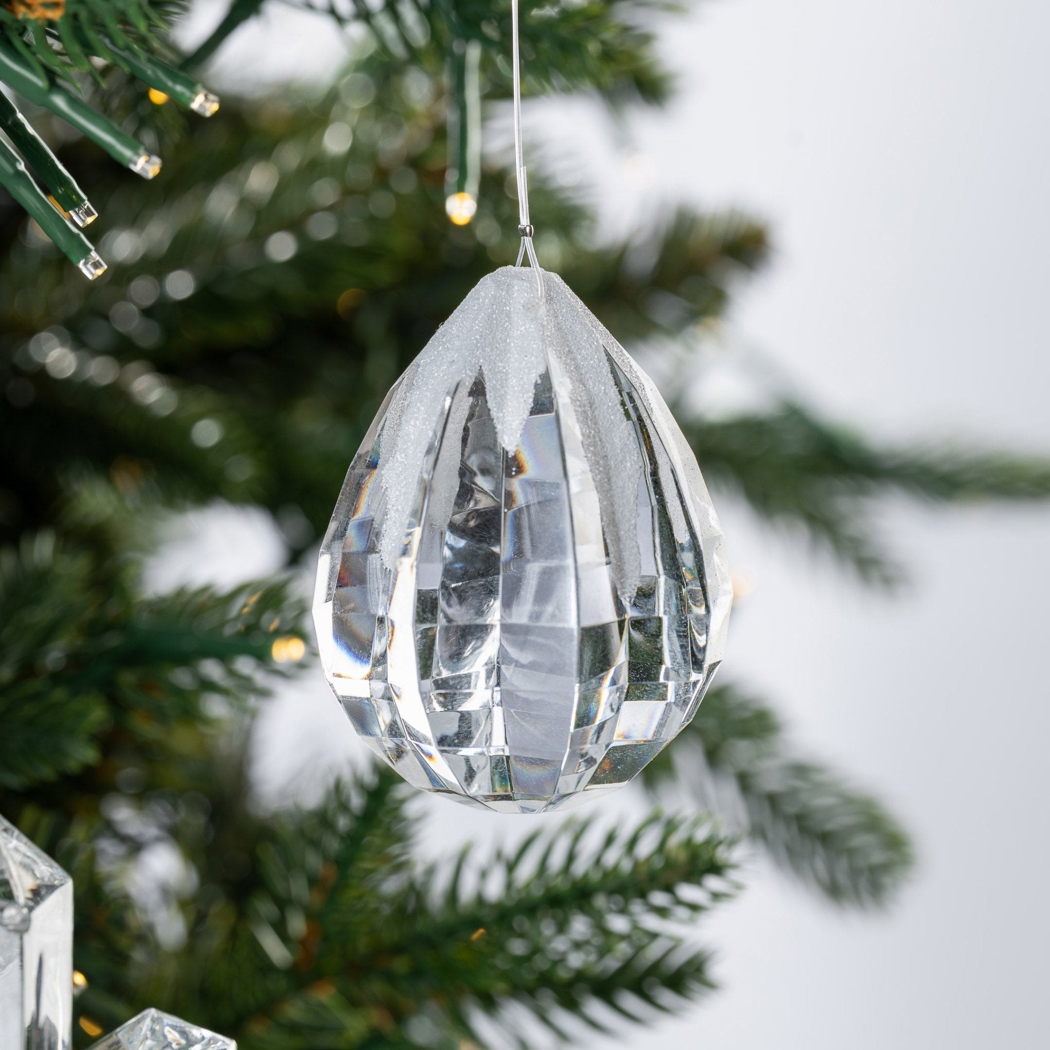 Float elegance onto your tree with this snow kissed balloon ornament, suspended on an invisible fishline for a magical, airy effect. Delicately dusted with soft white snow, it adds whimsical charm to snowy or minimal holiday decor.