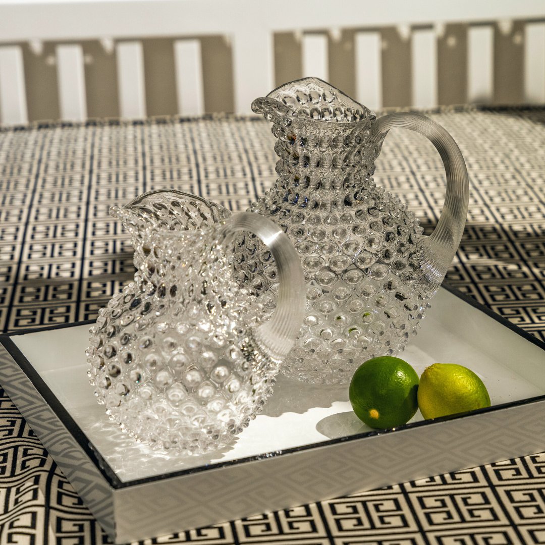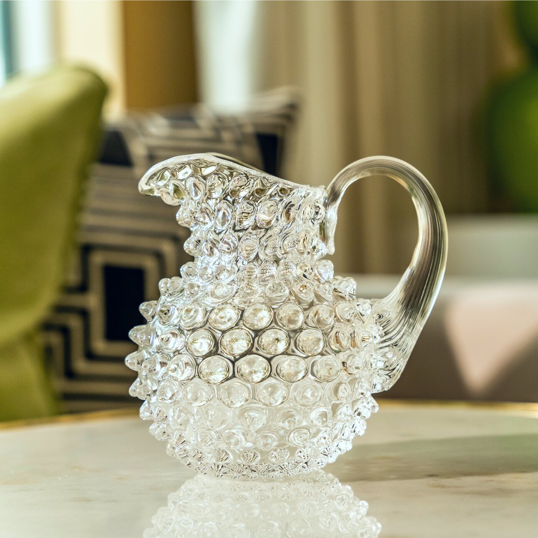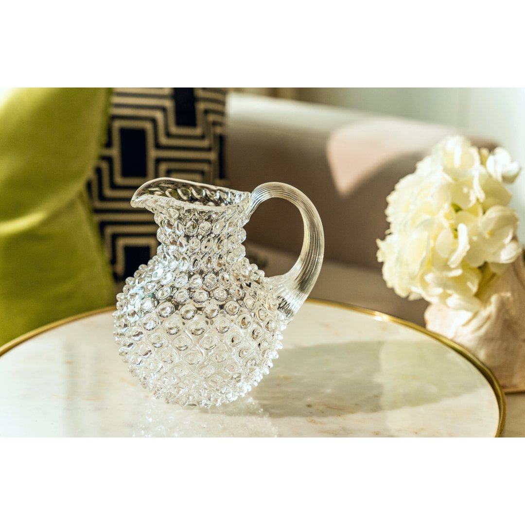 Add a touch of radiance to your tea time with our crystal creamer jug, with a flat round base and intricate hobnail pattern, hand-blown by master craftsmen in the heart of Bohemia.