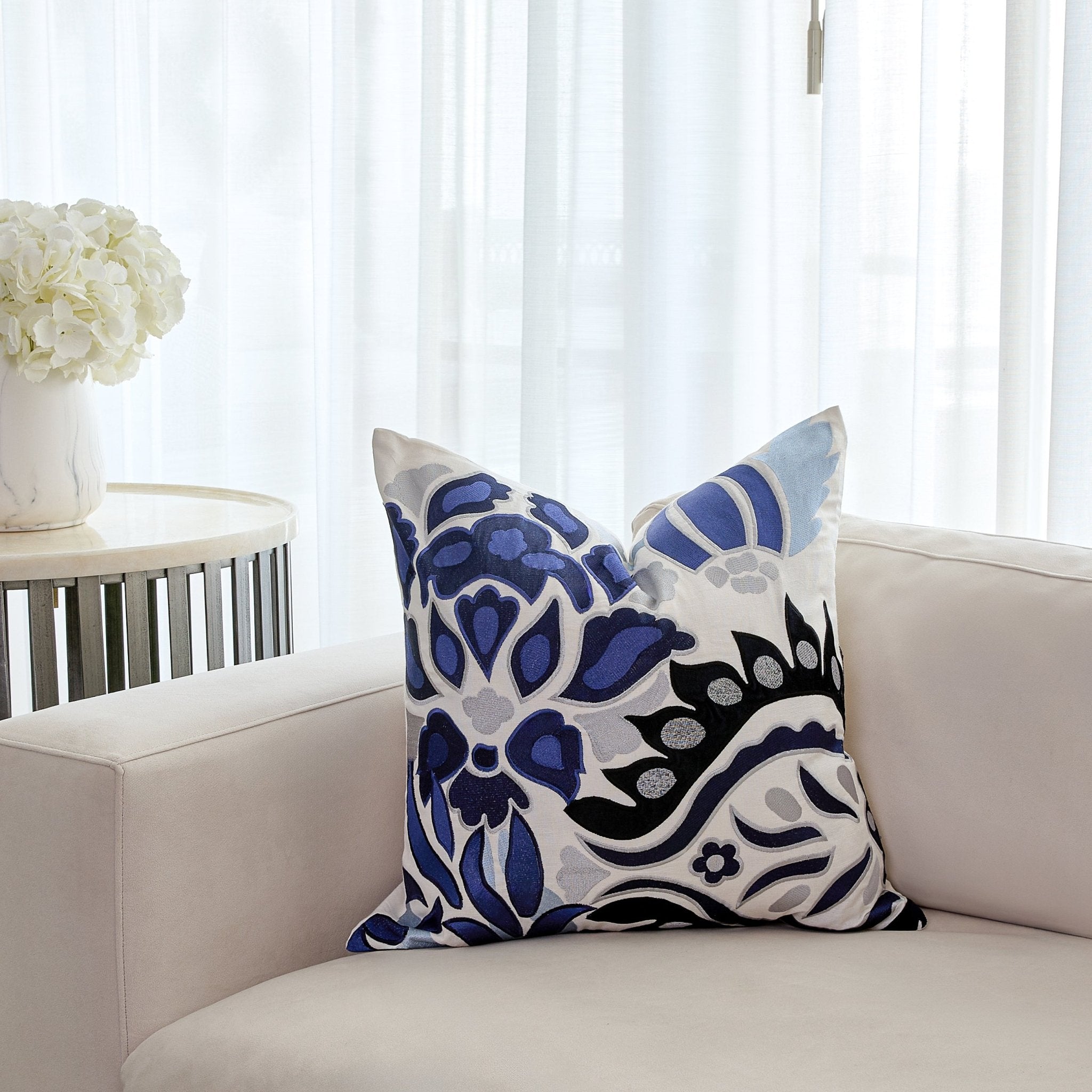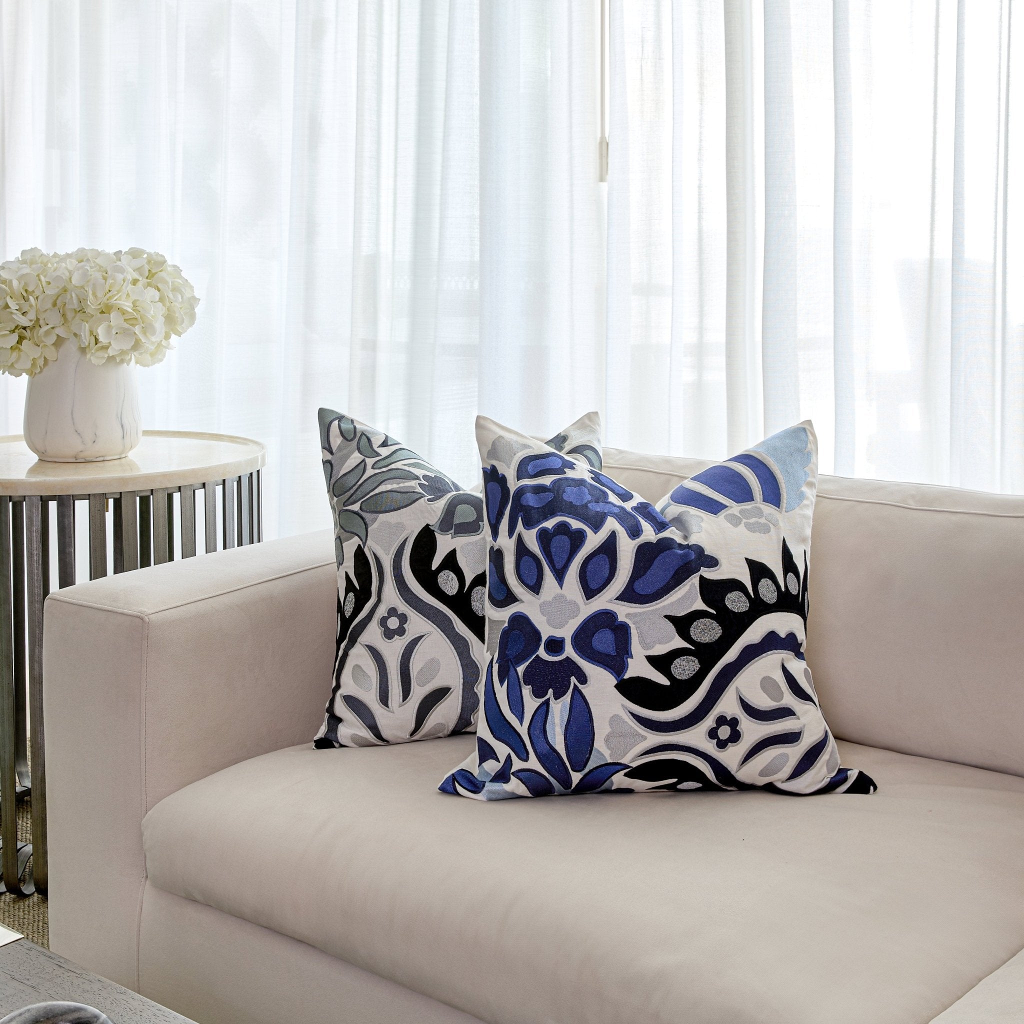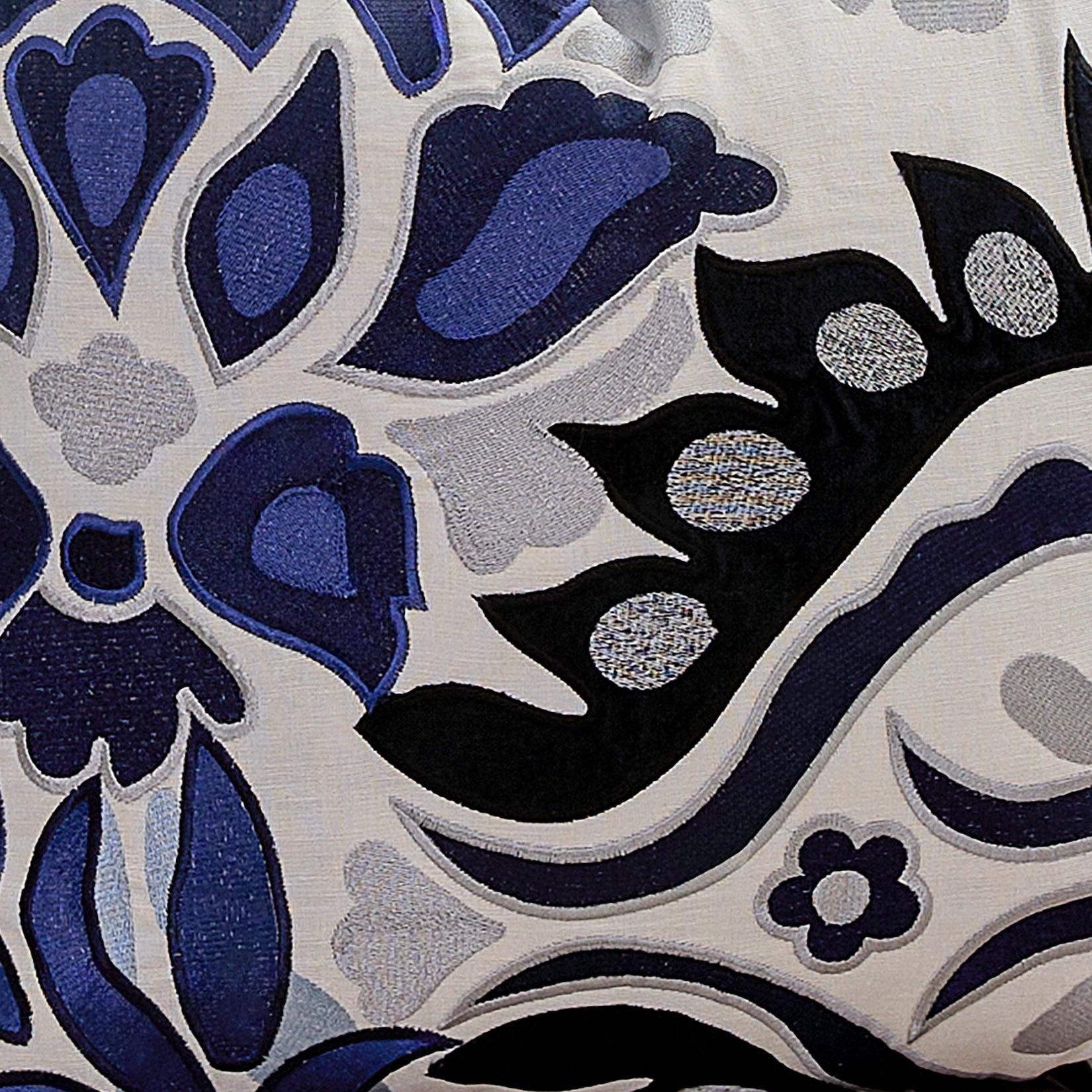 Indulge in luxury with our hand-crafted Blue Modern Paisley Square Cushion with a plush Feather Insert. Featuring a modern paisley pattern on breathable cotton canvas, embroidered by master artisans in India. This cushion comes with a feather filler for added comfort. Create an exclusive look by pairing it with our Modern Paisley Rectangular cushion or other luxury pieces from Irony Home's collection.