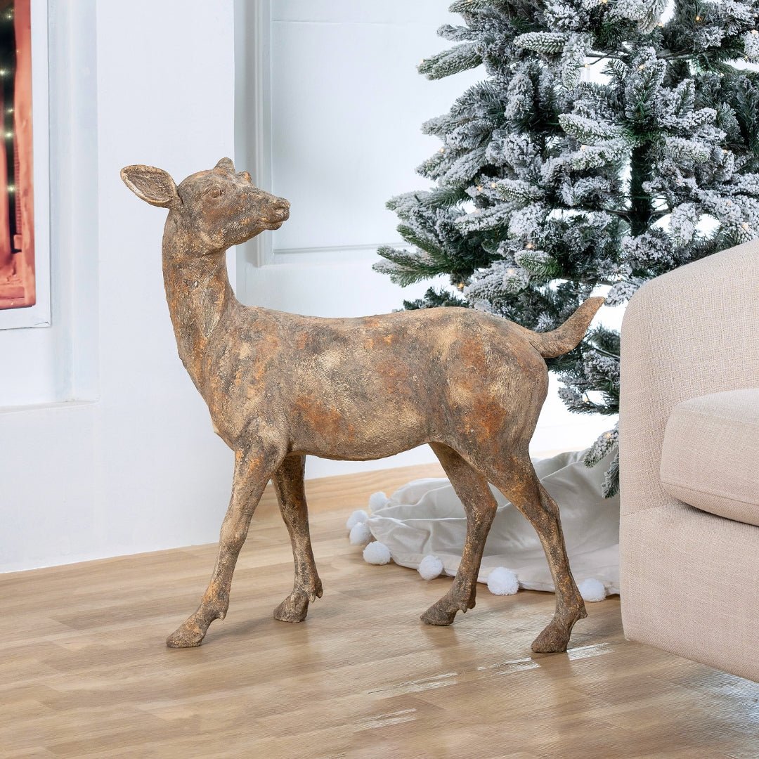 Rustic Festive Baby Reindeer Life-sized Figurine