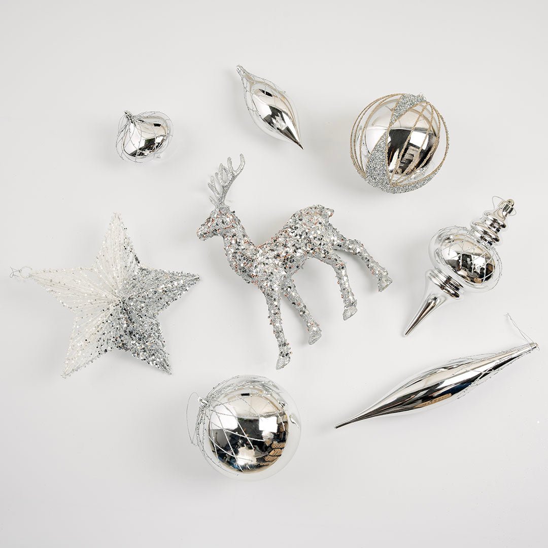 Prepare for a festive holiday season with our Shiny Silver Boxed Kit. This all-in-one kit includes the best mix of Christmas ornaments, all beautifully packaged in a shiny silver box. Simplify your decorating process and add some sparkle to your festivities with this must-have kit.