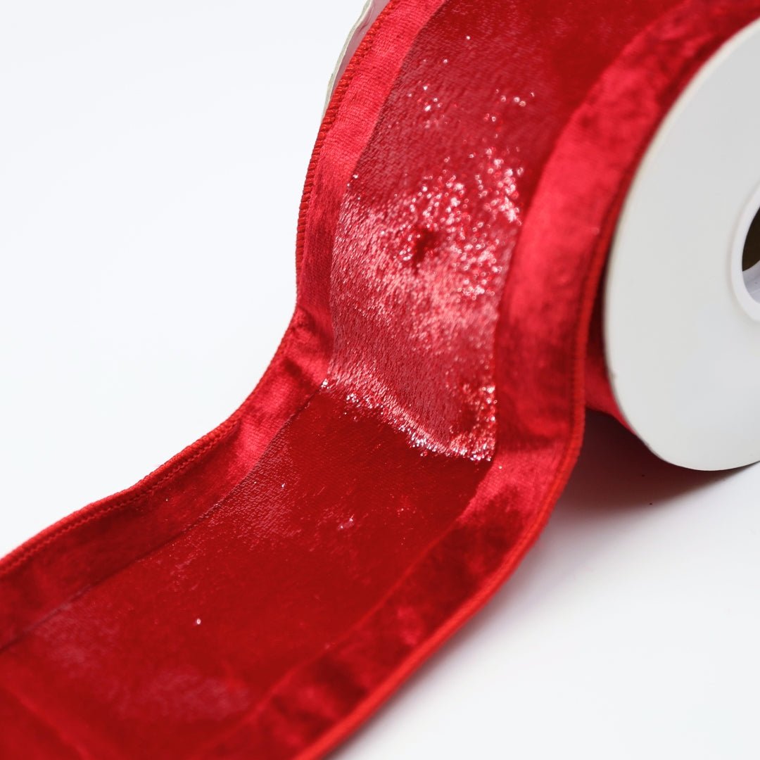 Make a bold festive statement with the Red Tinsel Jacquard Velvet Ribbon, featuring shimmering jacquard and wired edges for perfect bows. Ideal for trees, wreaths, garlands, staircases, and gift wrapping.