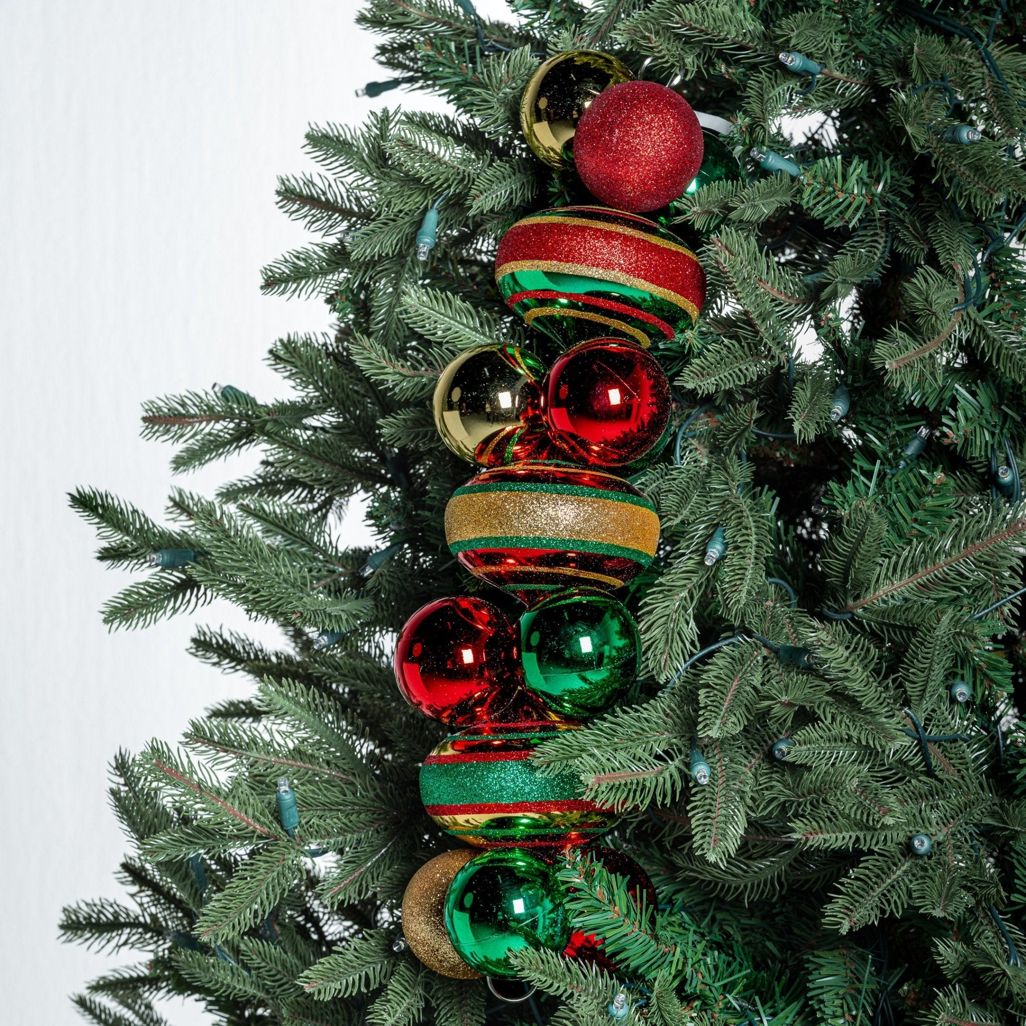 A charming way to fill your Christmas tree is with our classic festive garlands, like this endearing ball garland with sparkling traditional themed ball ornaments in red, green, and golden hues, adorned with sparkling glitter detailing.