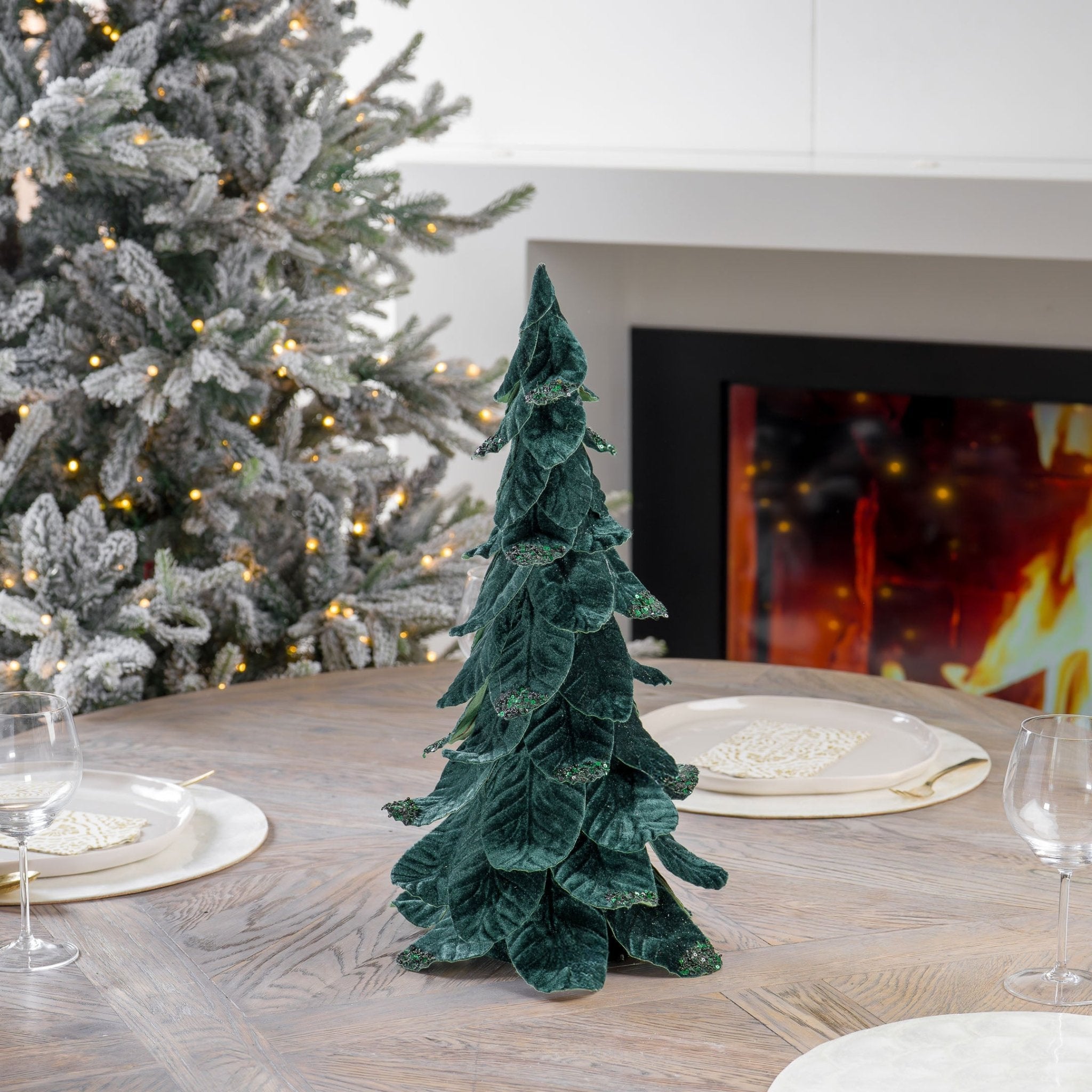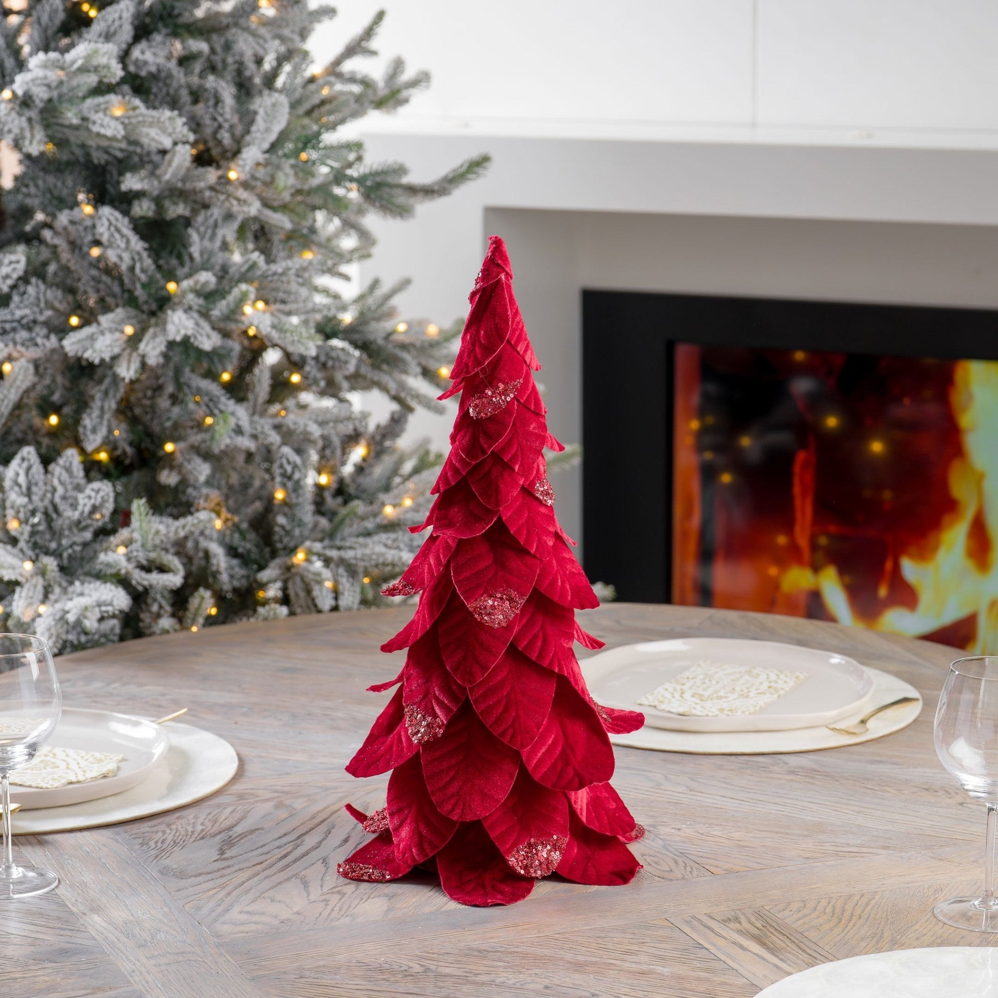 Celebrate the season with this striking conical tree, designed to add elegance and dimension to your holiday decor. Available in emerald or red, its clean sculptural silhouette pairs beautifully with metallics, glass, or natural accents. Making it perfect for mantels, tabletops, or entryways.
