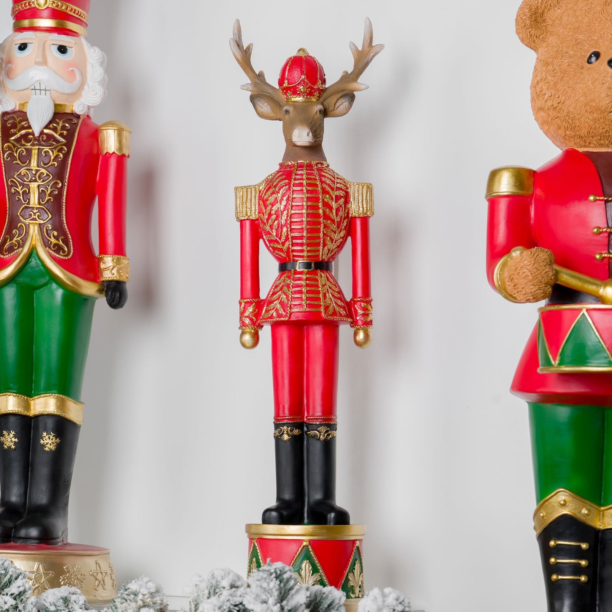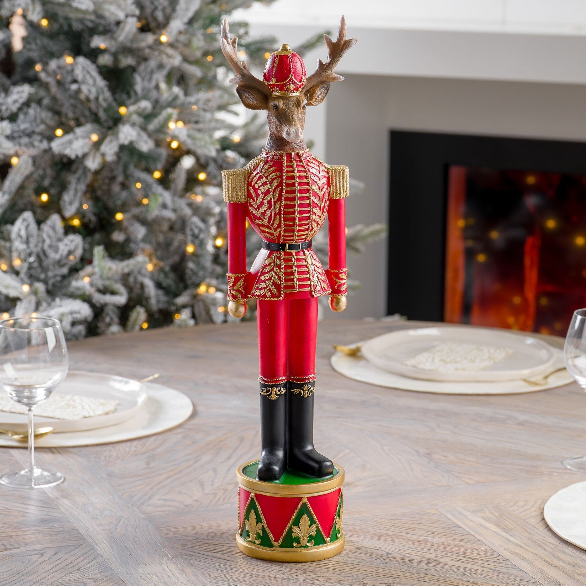 Dressed in stately attire, this reindeer brings a joyful twist to classic holiday décor, standing proudly in a vibrant drum to brighten any setting. Perfect for mantels, shelves, or holiday vignettes.