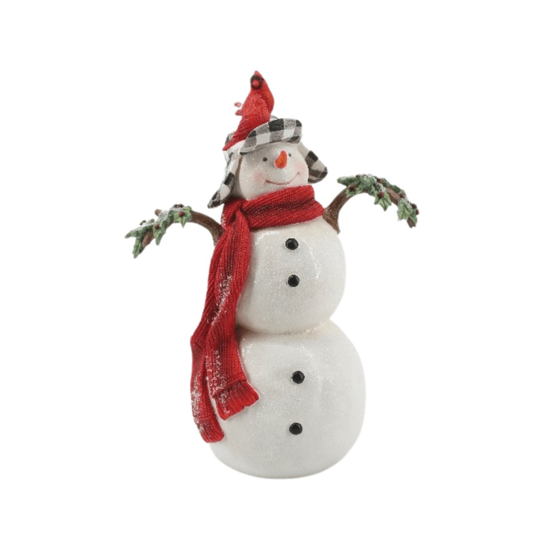 Nothing captures the true spirit of festive wonder like the timeless snowman. In this adorable hand-crafted resin figurine, a small red bird sits atop a cute snowman complete with a red scarf and a cute carrot nose detailing. An absolute must-have this festive season!