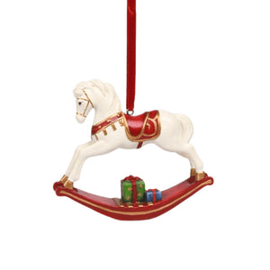 The true spirit of festive joy and childlike wonder comes to life in this timelessly traditional rocking horse festive ornament that will steal the spotlight in any setting that it is placed into. Explore the world of true festive spirit with this classic festive Christmas tree ornament.