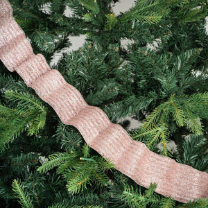 Add a touch of enchantment to your holiday decor with our Glitter Tree Ribbon in Blush. This luxurious ribbon sparkles with fine glitter, creating a magical effect as it cascades down your Christmas tree or wraps around gifts. The soft blush tone offers a sophisticated alternative to traditional colors, perfect for creating an elegant, on-trend holiday atmosphere that will impress your guests.