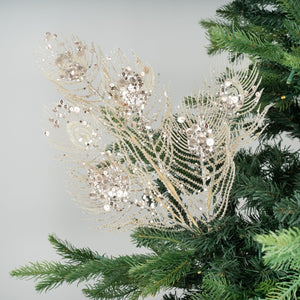 Festive Peacock Feather Tree Pick with Glitter