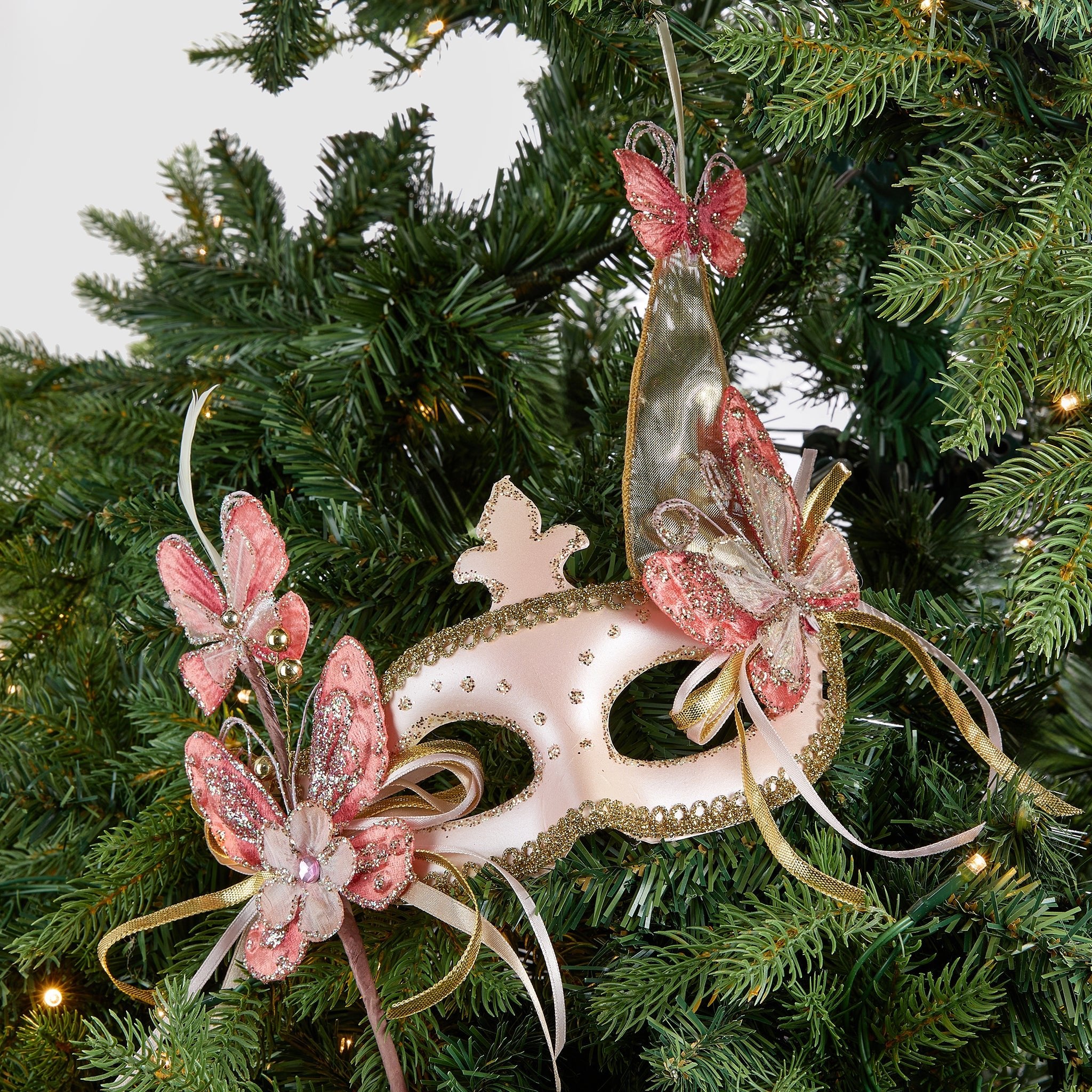 Experience the enchanting allure of our Blooming Ice Queen Feather Mask Ornament. The intricate design and delicate feather details will elevate your holiday decor to a luxurious level. Add a touch of elegance and sophistication to your home with this exquisite piece.