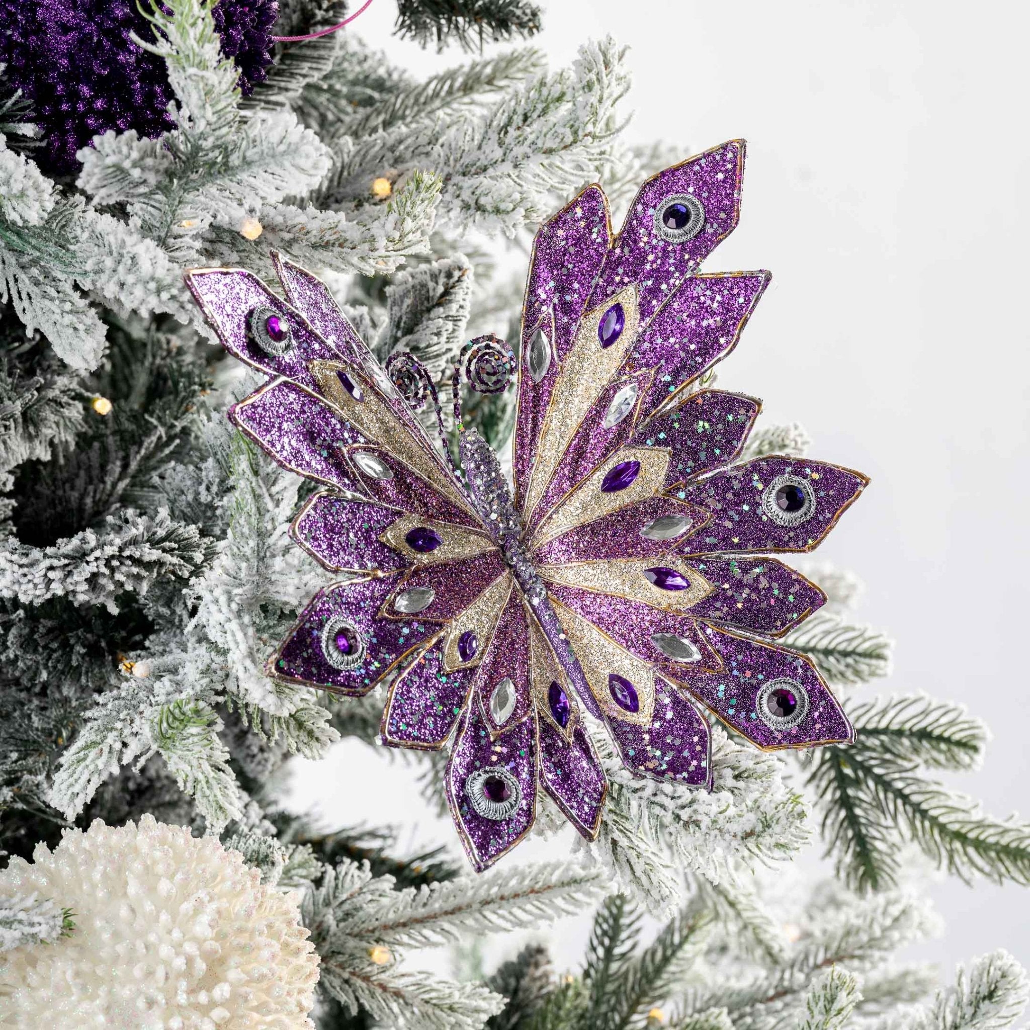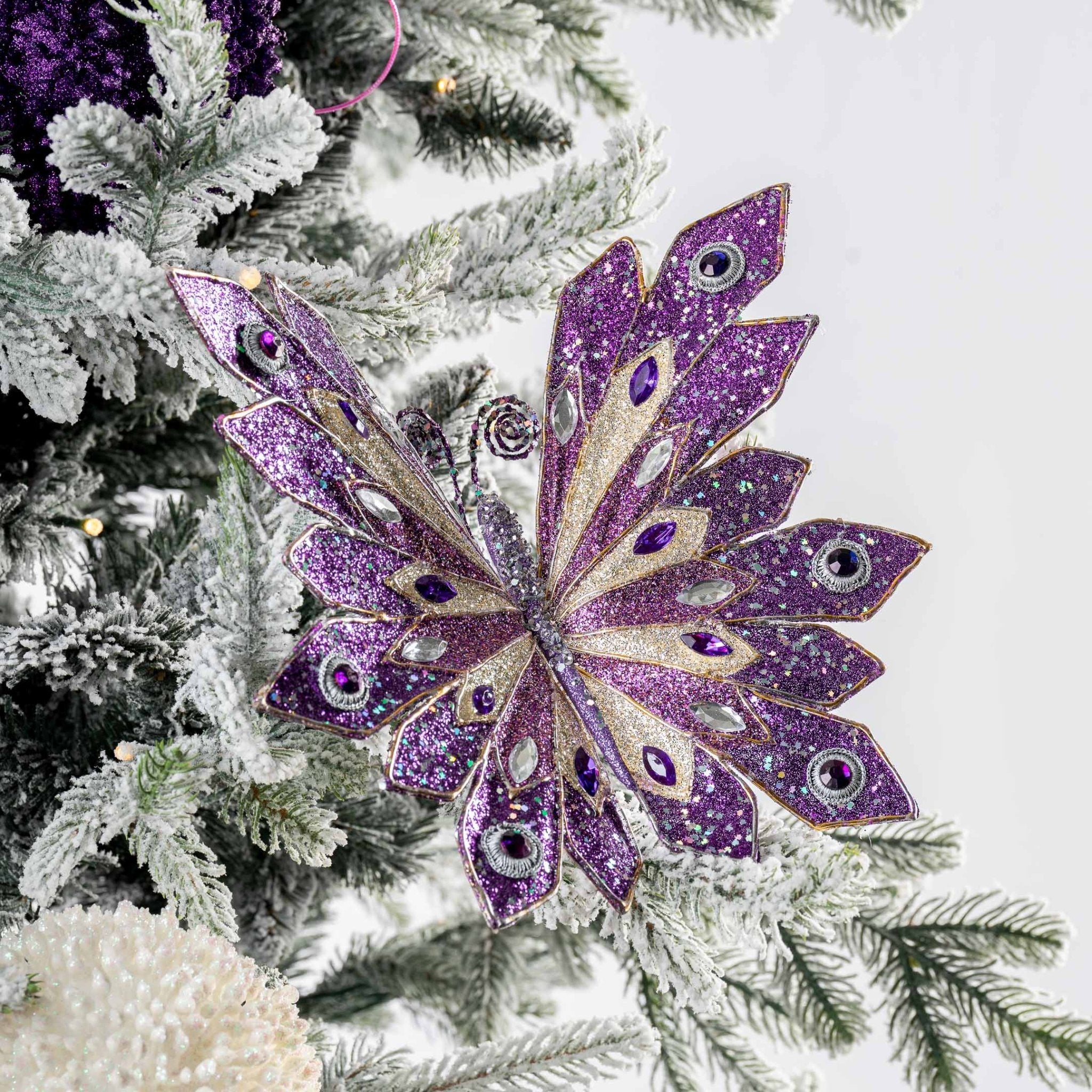 A stunning geometric butterfly clip ornament featuring precision-cut wings and a sleek metallic finish. Its contemporary design adds elegance and structure to trees, wreaths, or garlands, with a convenient clip-on style for versatile holiday styling.